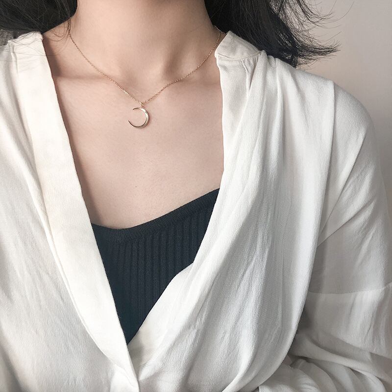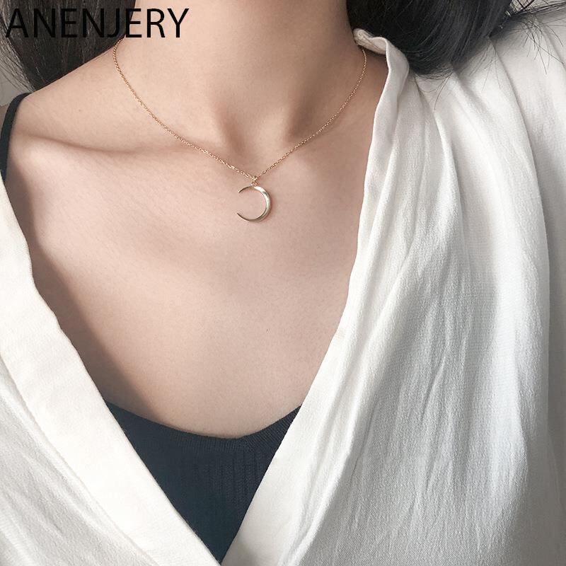 送料無料 ANENJERYシルバーカラームーンペンダントネックレス鎖骨チェーンメニスカスネックレスレディースデイリーギフトS-N542 レース 銀 アクセサリー AE165524142524826