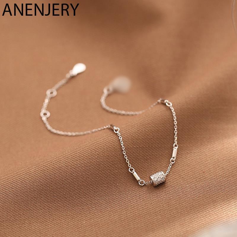 送料無料 ANENJERYシルバーカラー銅ジルコンシリンダーローラーブレスレットチェーン女性ライトラグジュアリー絶妙なホットジュエリー 銀 アクセサリー AE165568009730014