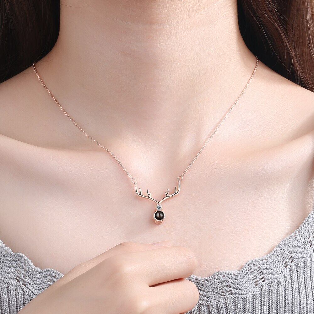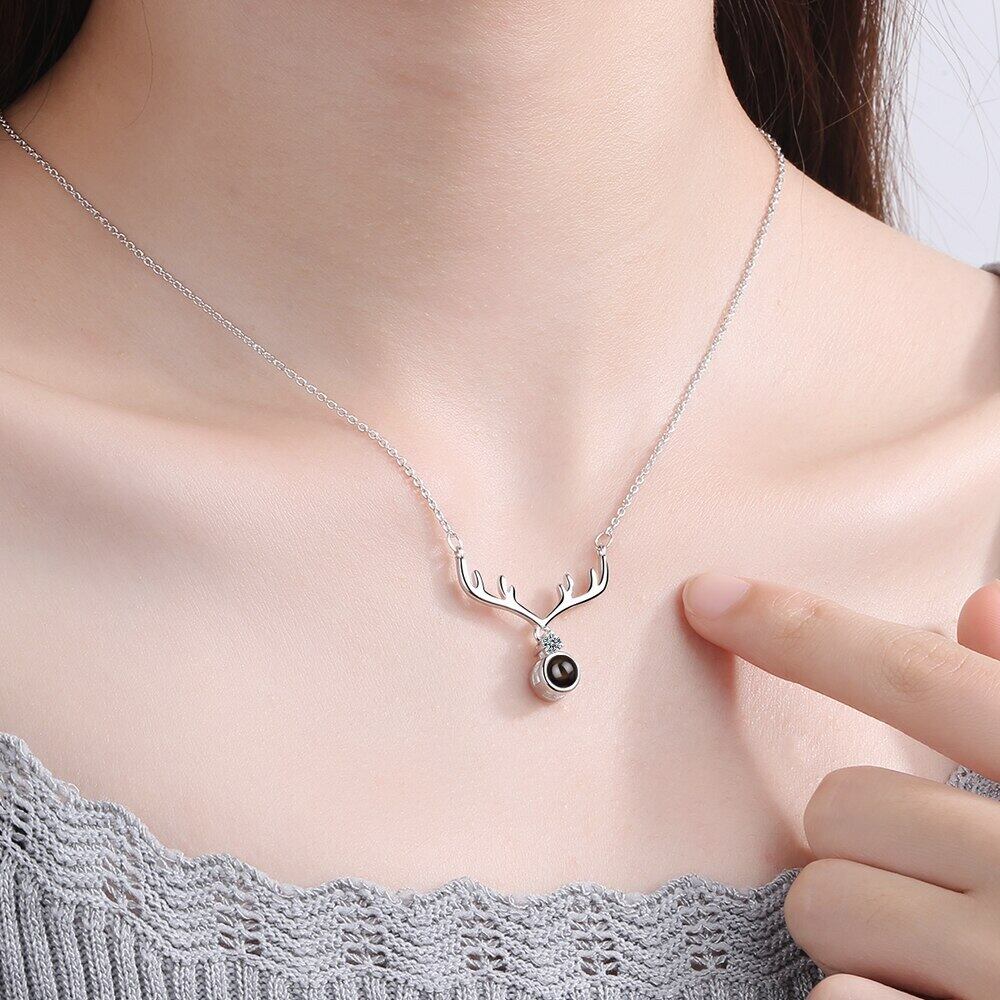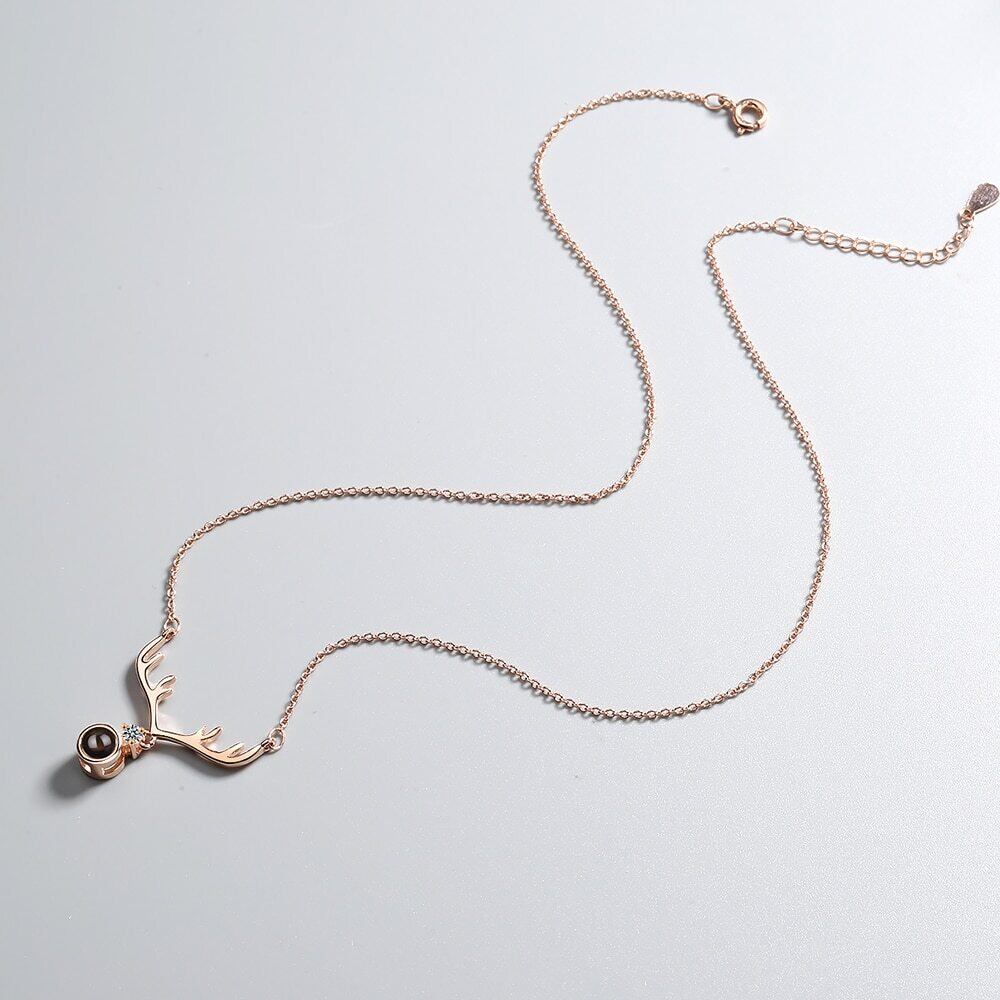送料無料 ANENJERYシルバーカラー人気の100言語ILoveYouネックレスエルクアントラーズシェイプロマンティッククリスマスギフトS-N440 レース 銀 アクセサリー AE165551130377566