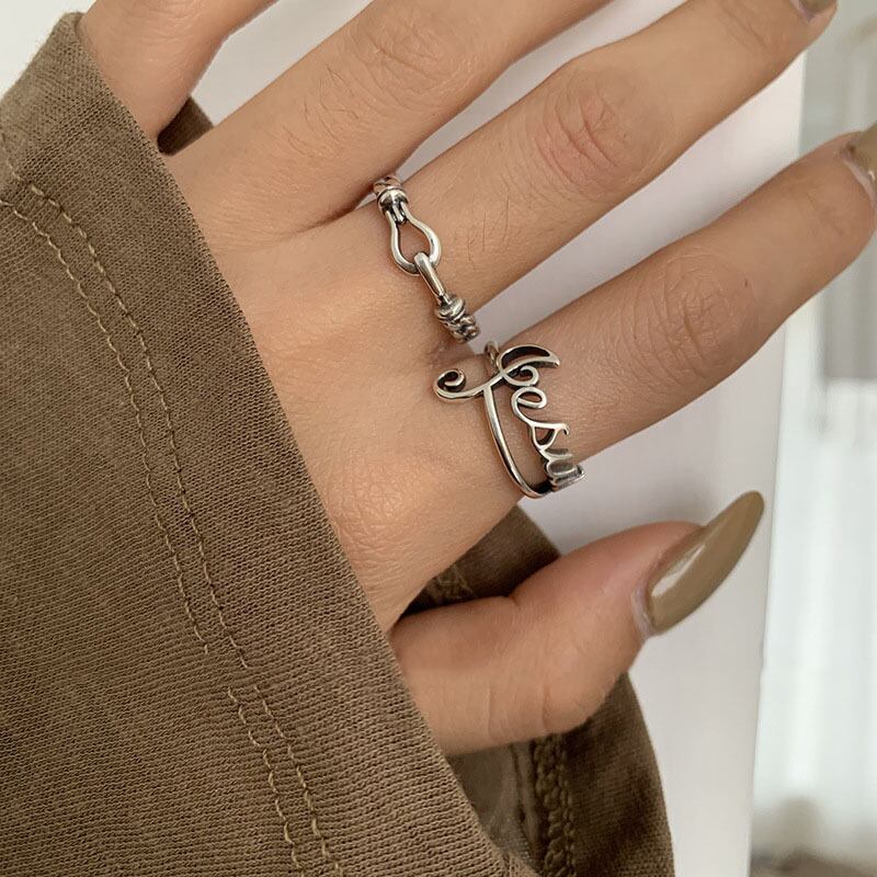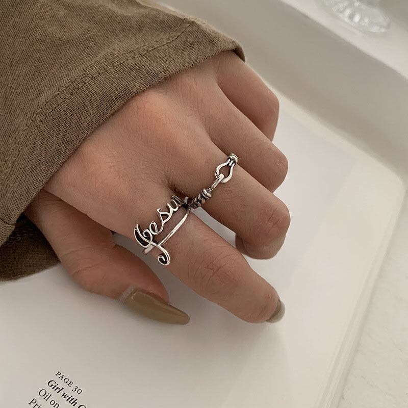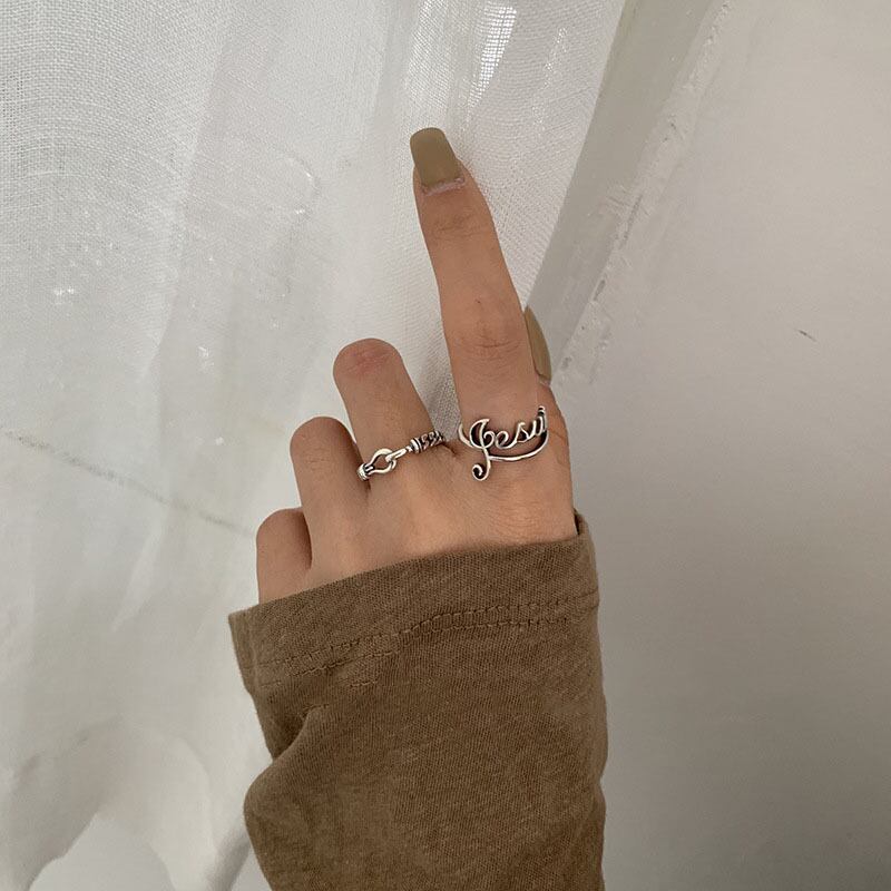 送料無料 ANENJERYシルバーカラー音符レターロックタイシルバーリング女性レトロオープンフィンガーリングジュエリーS-R697 指輪 銀 アクセサリー AE165593629533764