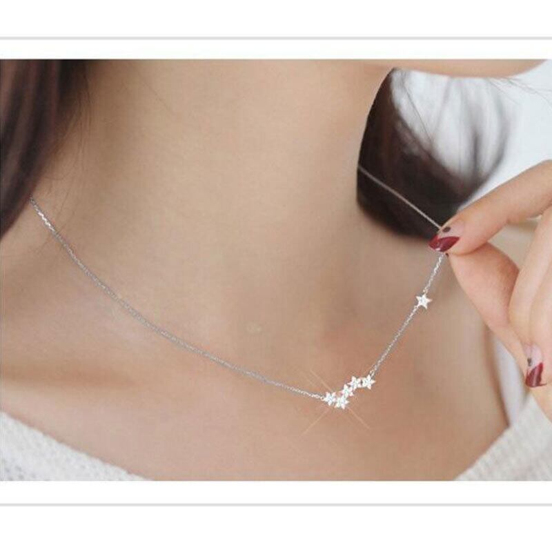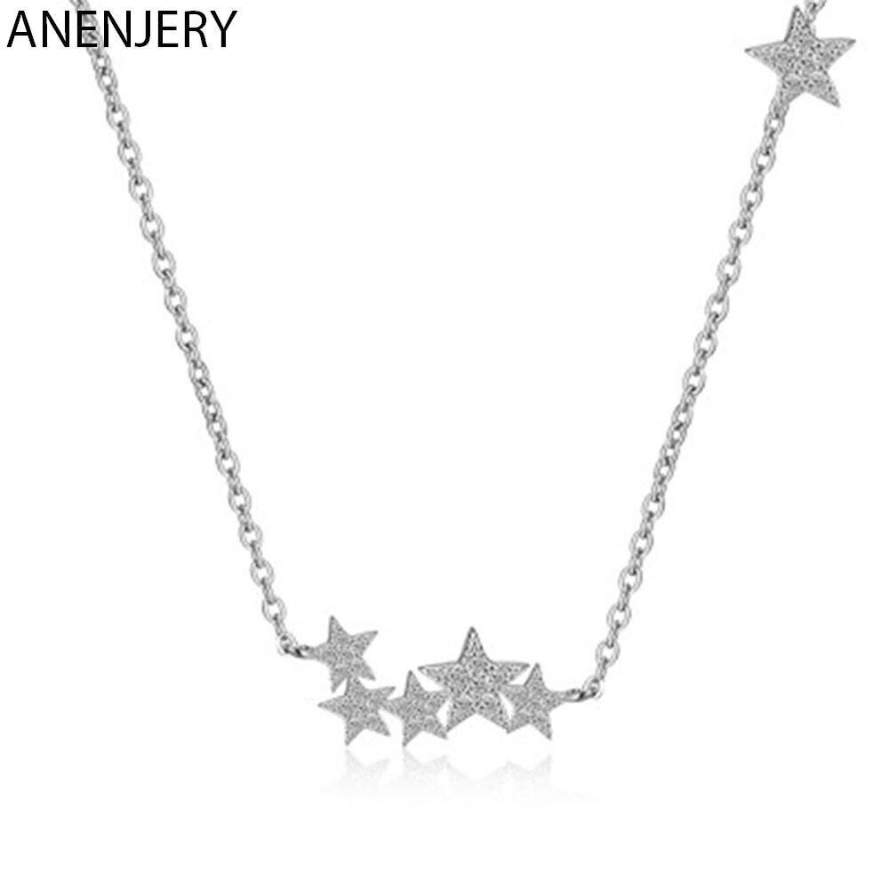 送料無料 ANENJERYシルバーカラースパークリングスタッカブルスターペンダントネックレスレディースボディステートメントジュエリーギフトS-N56 レース 銀 アクセサリー AE16554381858954