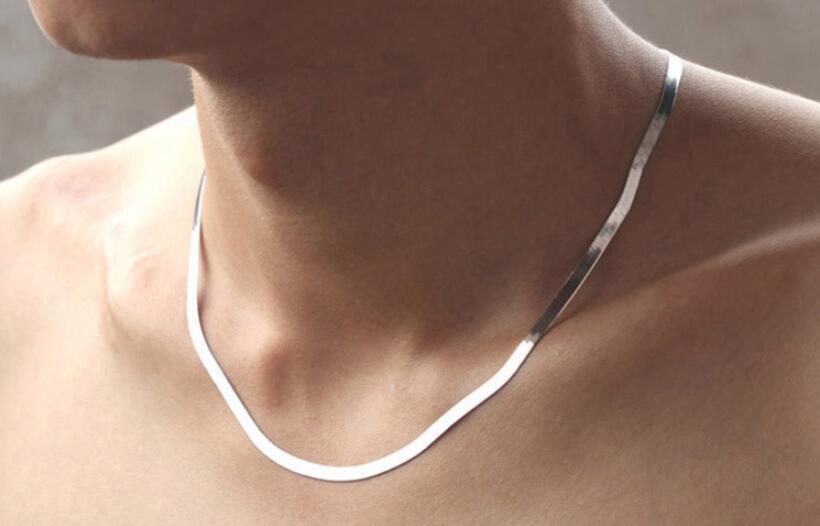 送料無料 ANENJERYシルバーカラースネークチェーンネックレスショート鎖骨チェーン女性男性カップルジュエリー レース 銀 アクセサリー AE165568907490869