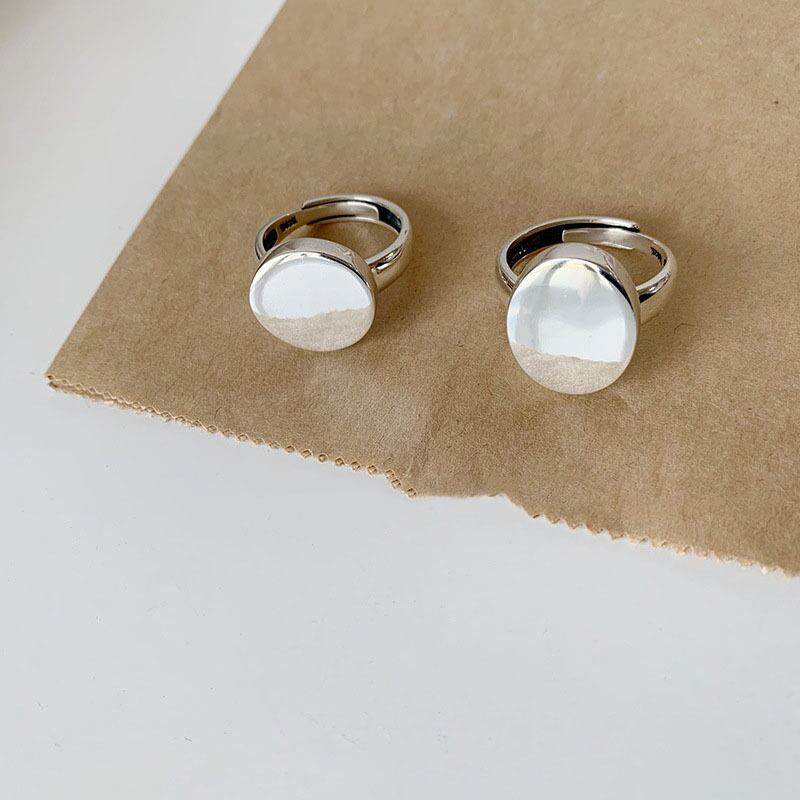 送料無料 ANENJERYシルバーカラースムースオーバルラウンドディスクシルバーリングシンプルオープンフィンガーリングレディースジュエリーギフトS-R681 指輪 銀 アクセサリー AE165550644466767