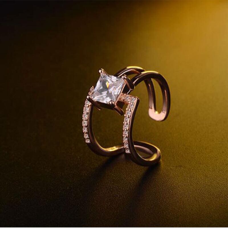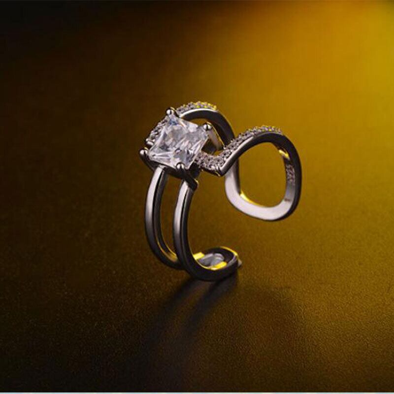 送料無料 ANENJERYシルバーカラーダブルレイヤーまばゆいばかりのスクエアジルコンオープニングリングレディースアニバーサリーウェディングジュエリーS-R326 指輪 銀 スクウェア アクセサリー AE165536324343610
