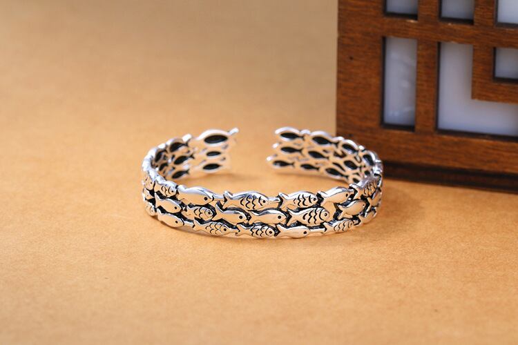送料無料 ANENJERYシルバーカラースタッカブルフィッシュタイシルバーバングルブレスレットヴィンテージオープンカフバングルレディースメンズギフトS-B276 銀 ビンテージ アクセサリー AE16557416055672