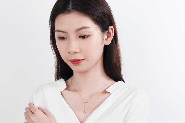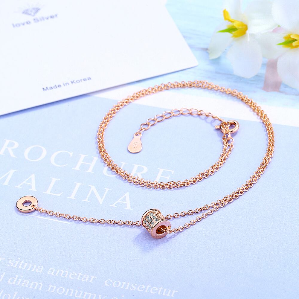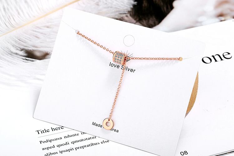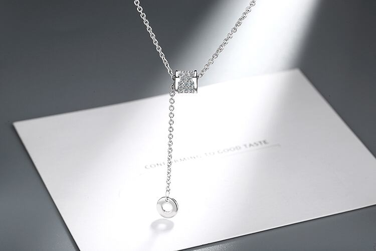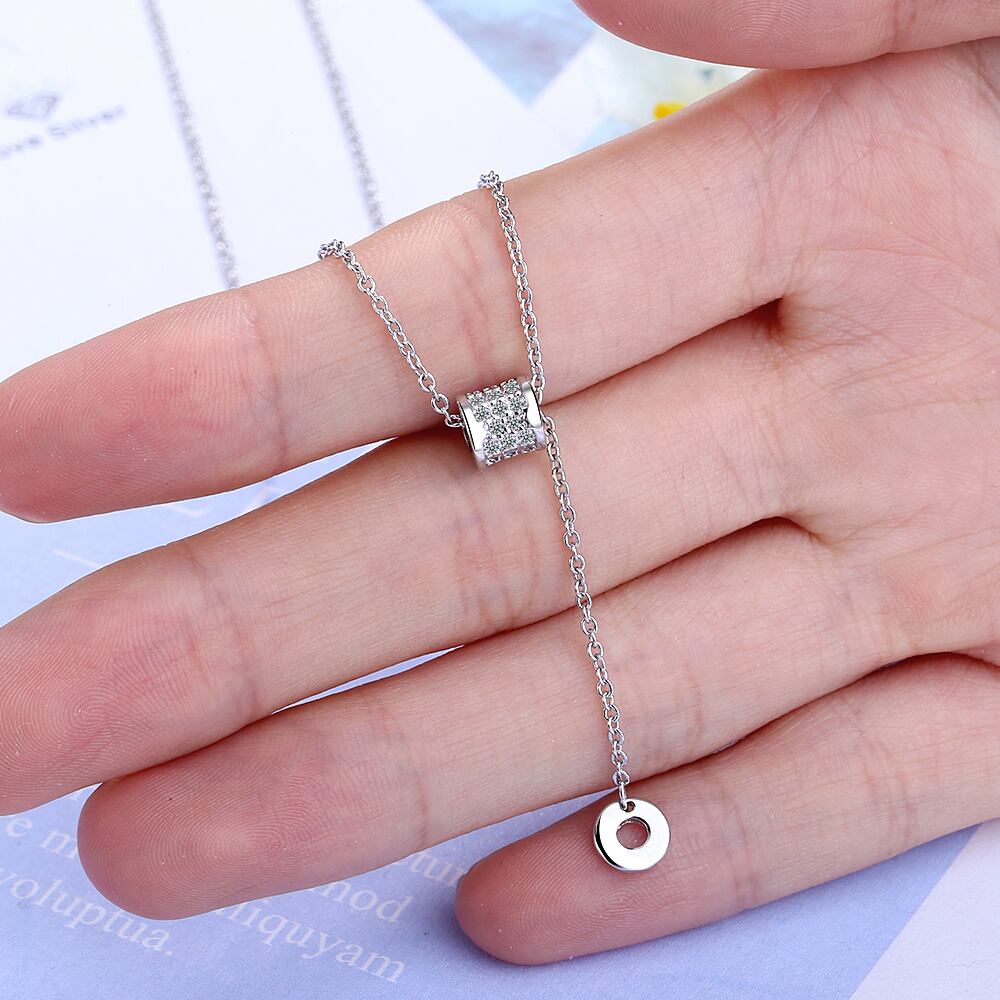 送料無料 ANENJERYシルバーカラーシリンダーモザイクキュービックジルコンペンダントネックレスクラビクルチェーン幾何学ジュエリー女性S-N506 レース 銀 アクセサリー AE165582373269566