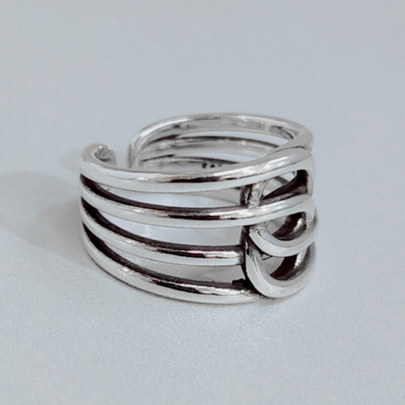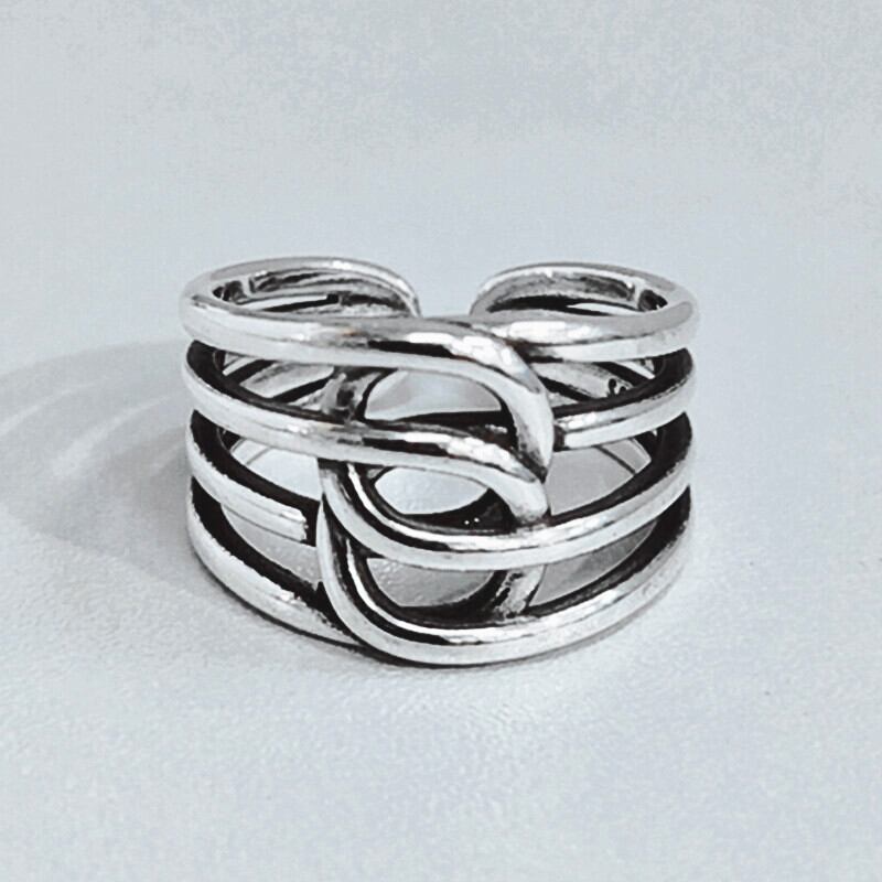 送料無料 ANENJERYシルバーカラーシンプルムティルレイヤーツイストノットタイシルバーカラーリング女性アジャスタブルジュエリーギフトS-R498 指輪 銀 アクセサリー AE165559492301834