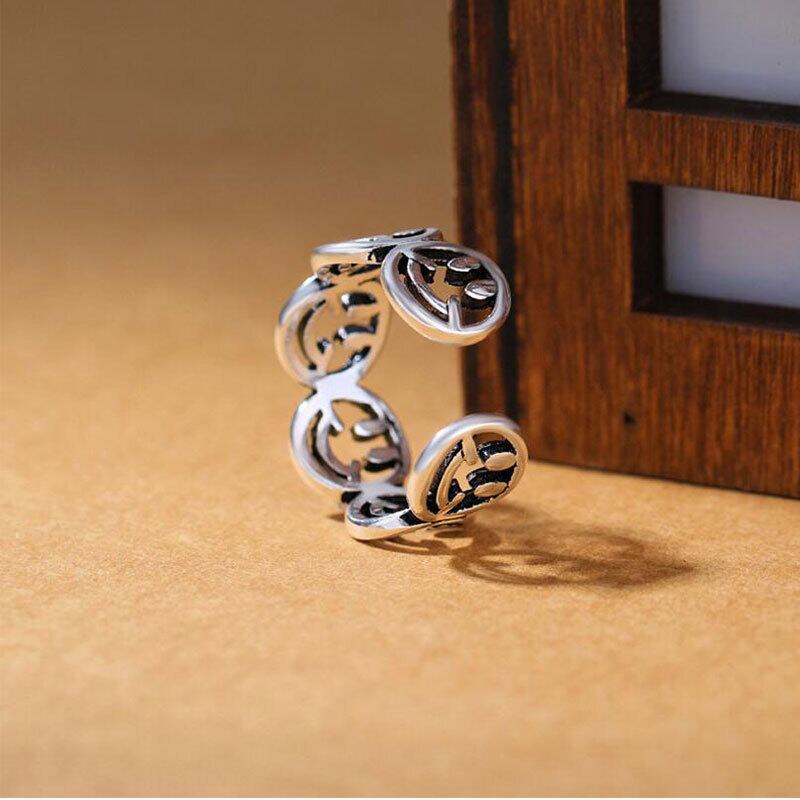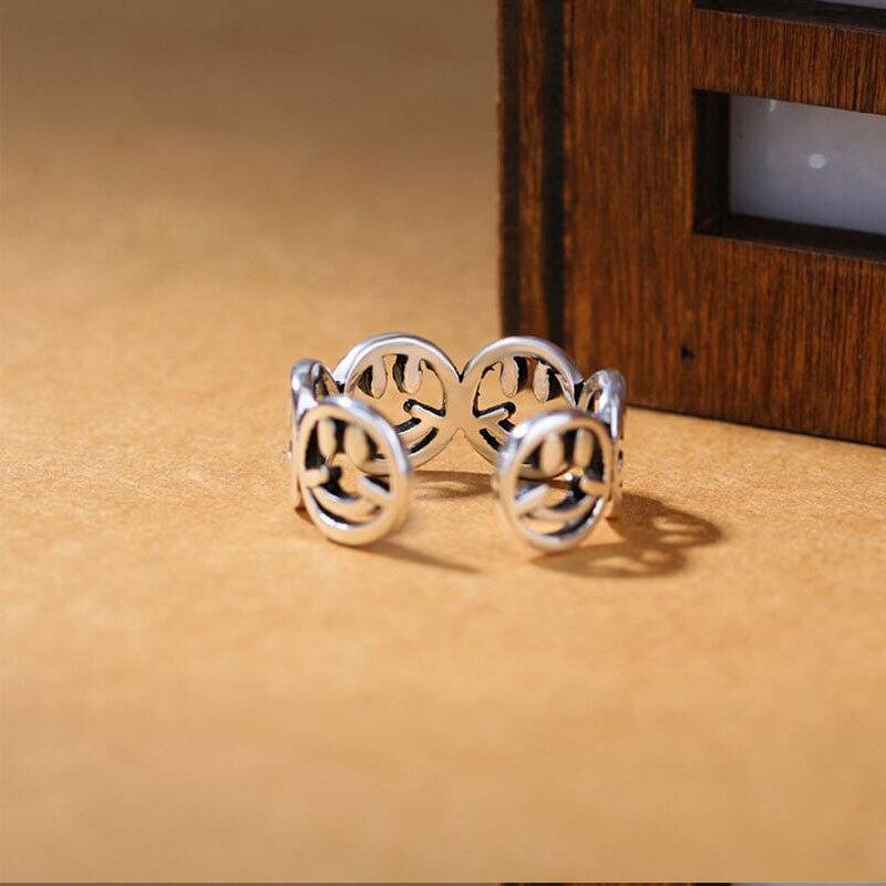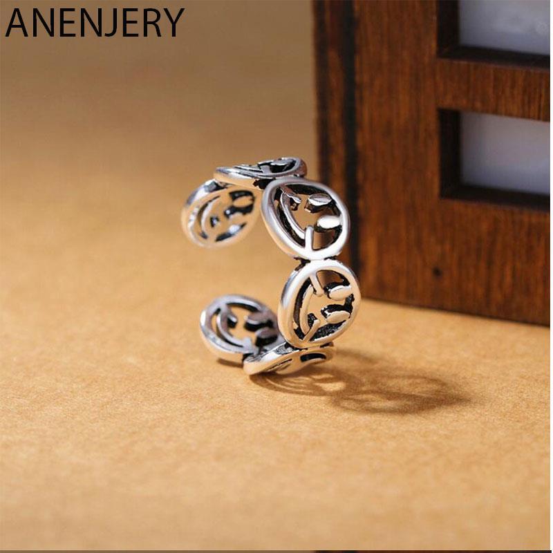 送料無料 ANENJERYホロウスマイリーフェイスアジャスタブルリングジュエリーレトロヴィンテージタイシルバーカラーリングレディースメンズS-R272 指輪 銀 ビンテージ アクセサリー AE165511476999421