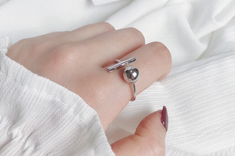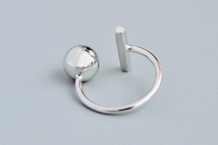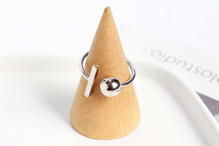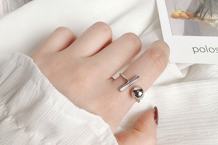 送料無料 シルバーカラーパーソナリティ幾何学的直方体ラウンドボール非対称オープンリングトレンディなシルバージュエリーレディースジュエリーS-R522 指輪 銀 アクセサリー AE165584686438289