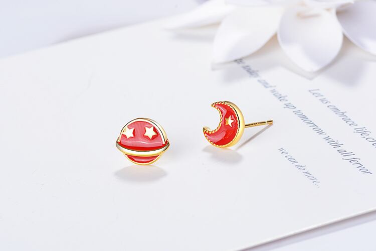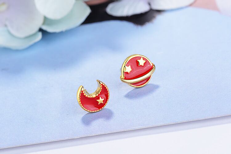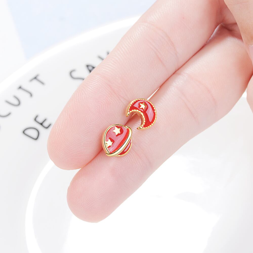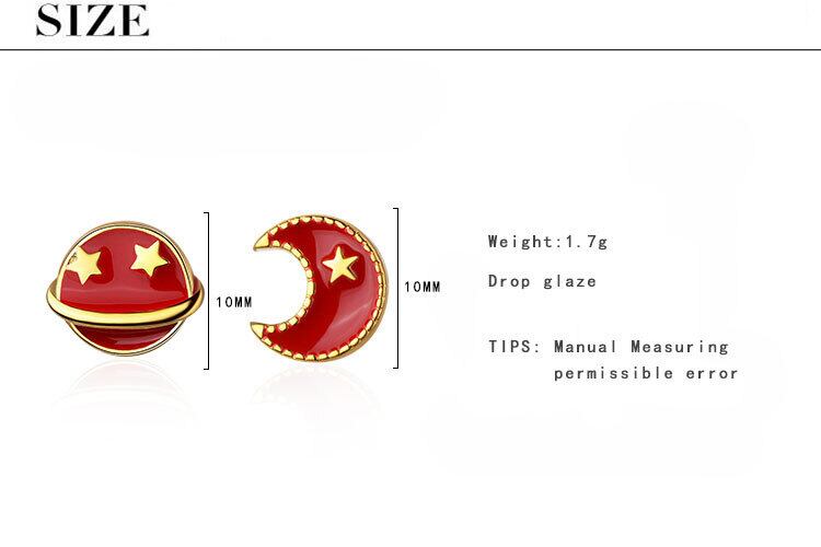 送料無料 ANENJERYシルバーカラー絶妙な釉薬宇宙惑星ムーンスター非対称スタッドピアス女性ジュエリーS-E685 イヤリング 銀 アクセサリー AE165558608253120