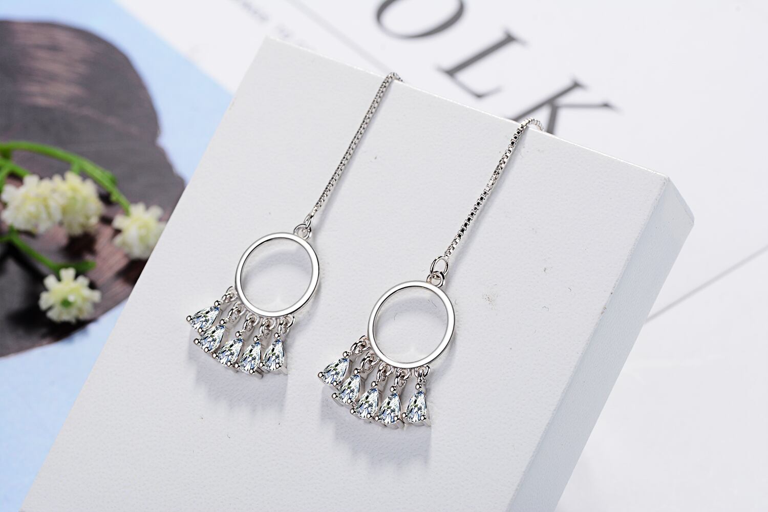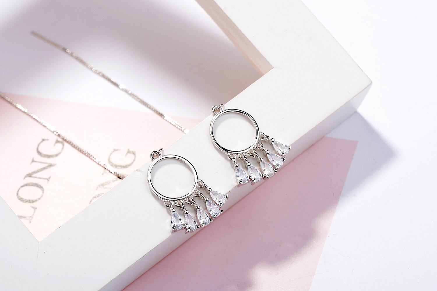 送料無料 ANENJERYシルバーカラーロングテルドリームキャッチャーダングルピアス、ブリンブリンジルコンジュエリーレディースパーティーギフトS-E615 イヤリング リング 指輪 銀 アクセサリー AE16559164396279