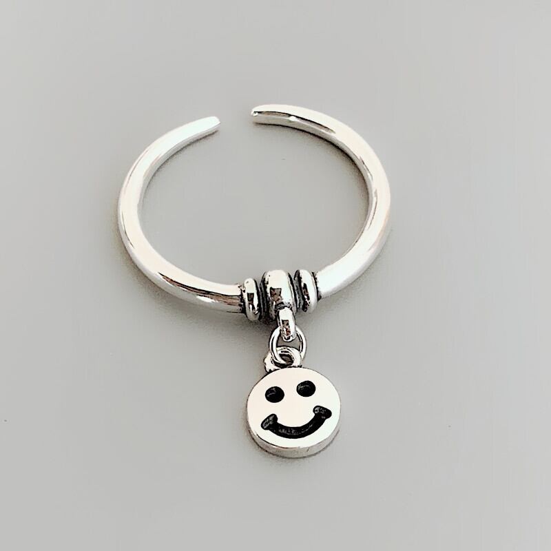 送料無料 ANENJERYシルバーカラー笑顔テルタイシルバーリングトレンドオープンサイズリング女性パーティージュエリー発送S-R603 指輪 銀 アクセサリー AE165584539770805