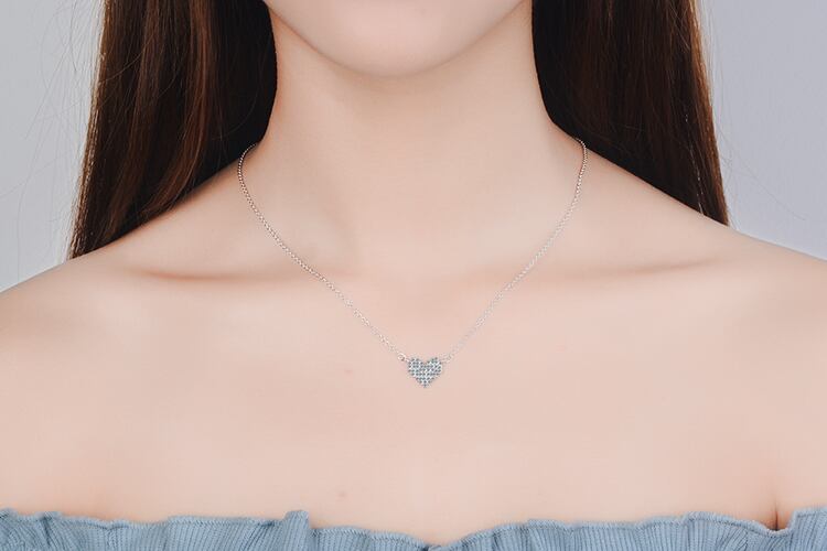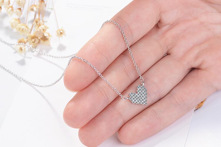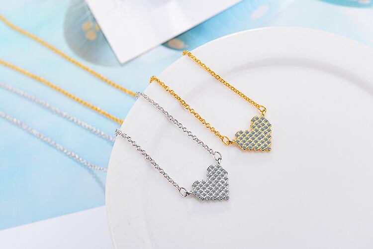 送料無料 シルバーカラーフルシャイニージルコンラブハートペンダントネックレスクラビクルチェーンネックレスジュエリー女性ウェディングギフトS-N328 レース 銀 アクセサリー AE165551563182950
