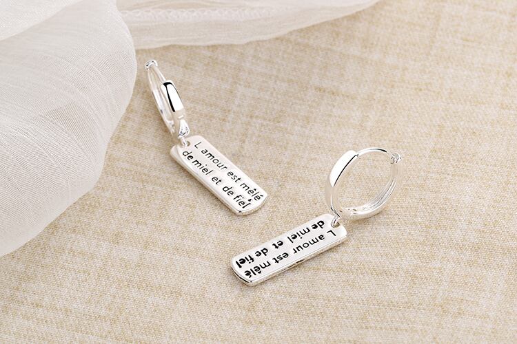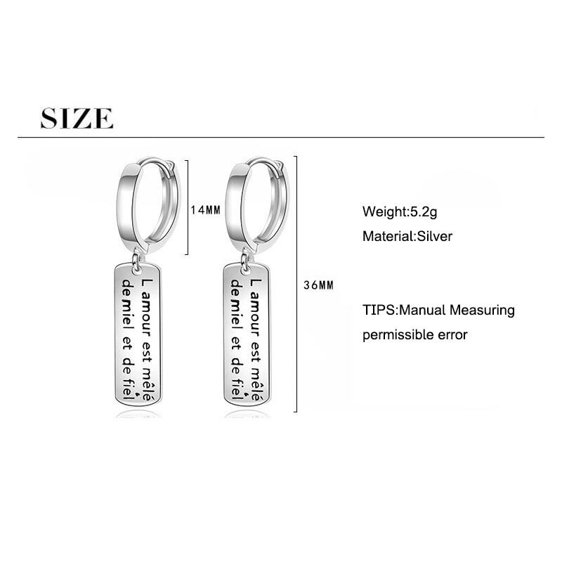 送料無料 ANENJERYシルバーカラー長方形レターフープピアス女性ミニマリストアクセサリーギフト配送S-E1076 イヤリング リング 指輪 銀 アクセサリー AE16556302136211