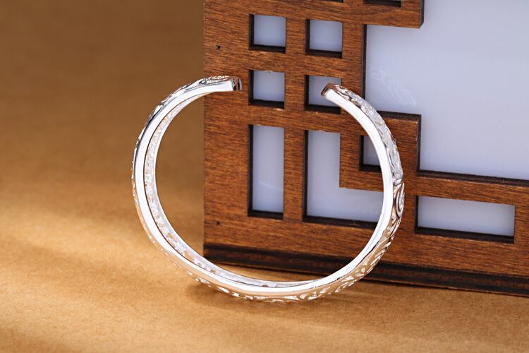 送料無料 ANENJERYシルバーカラーパターンホローオープンカフバングルブレスレットクリック絶妙な手作りバングル女性ギフトS-B273 銀 アクセサリー AE165554773348700