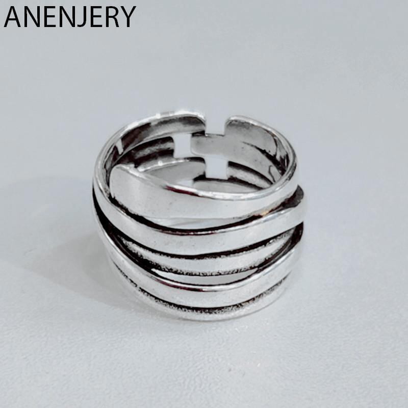 送料無料 ANENJERYシルバーカラーポリッシュマルチレイヤーツイストワインディングオープニングタイシルバーカラーリングレディースメンズS-R556 指輪 銀 アクセサリー AE165587961952324