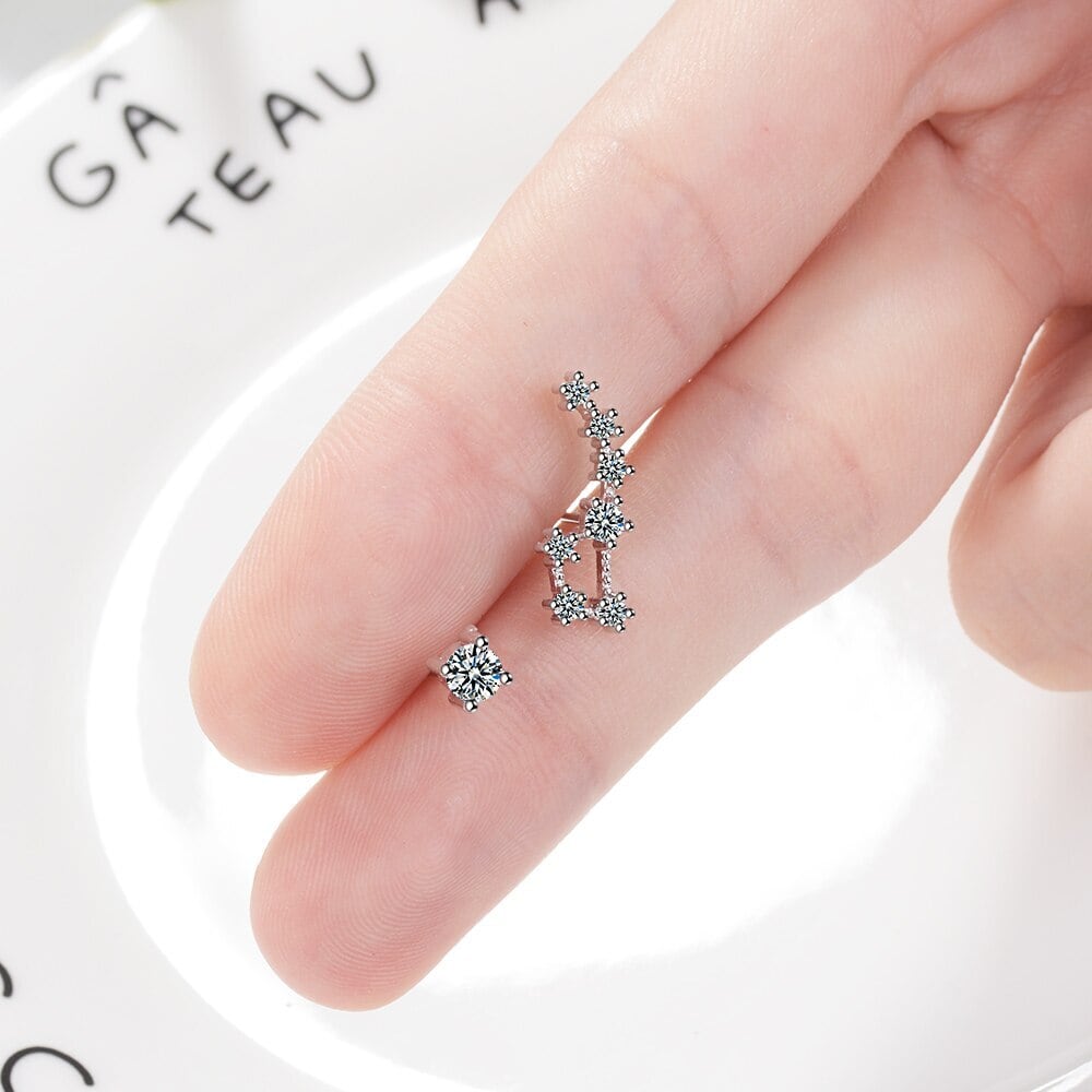 送料無料 ANENJERYシルバーカラーシンプルアシンメトリージルコンスタースタッドピアス女性キラキラ日常ジュエリーギフトS-E737 イヤリング リング 指輪 銀 アクセサリー AE165594531907413