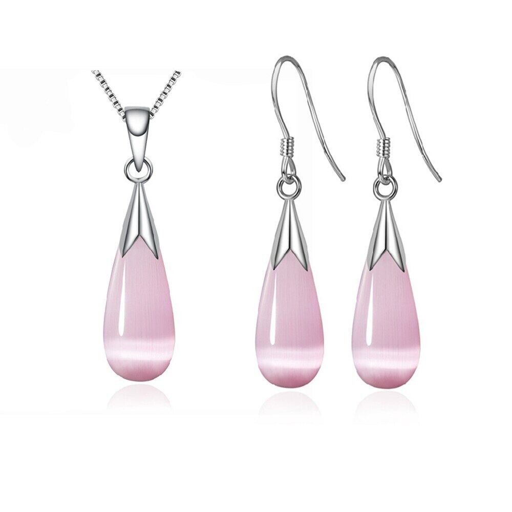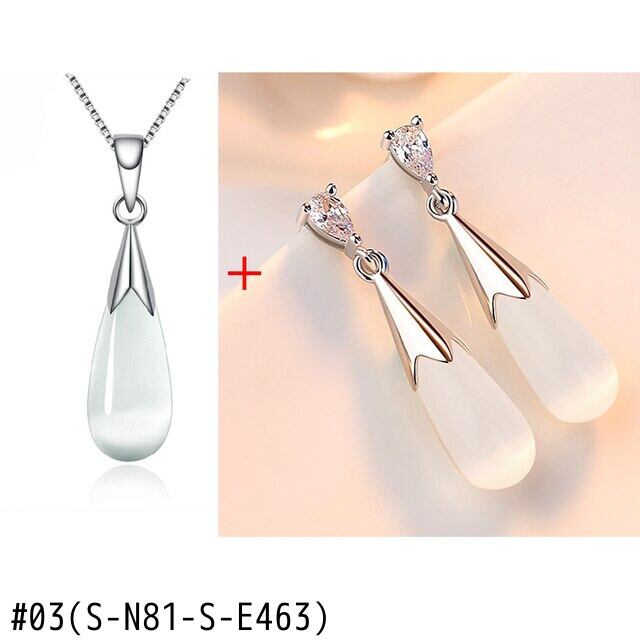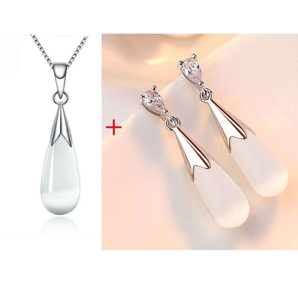 送料無料 ANENJERYシルバーカラームーンストーンオパールウォーターネックレス/イヤリングレディースジュエリーセットベストギフト レース 蛋白石 指輪 銀 アクセサリー AE165548939225398