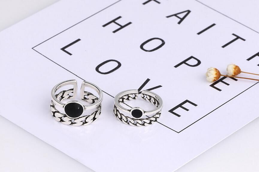 送料無料 ANENJERYシルバーカラーレトロダブルレイヤータイシルバーカラーアジャスタブルリングとブラックジルコンカップルジュエリーS-R288 指輪 銀 アクセサリー AE165552684513625