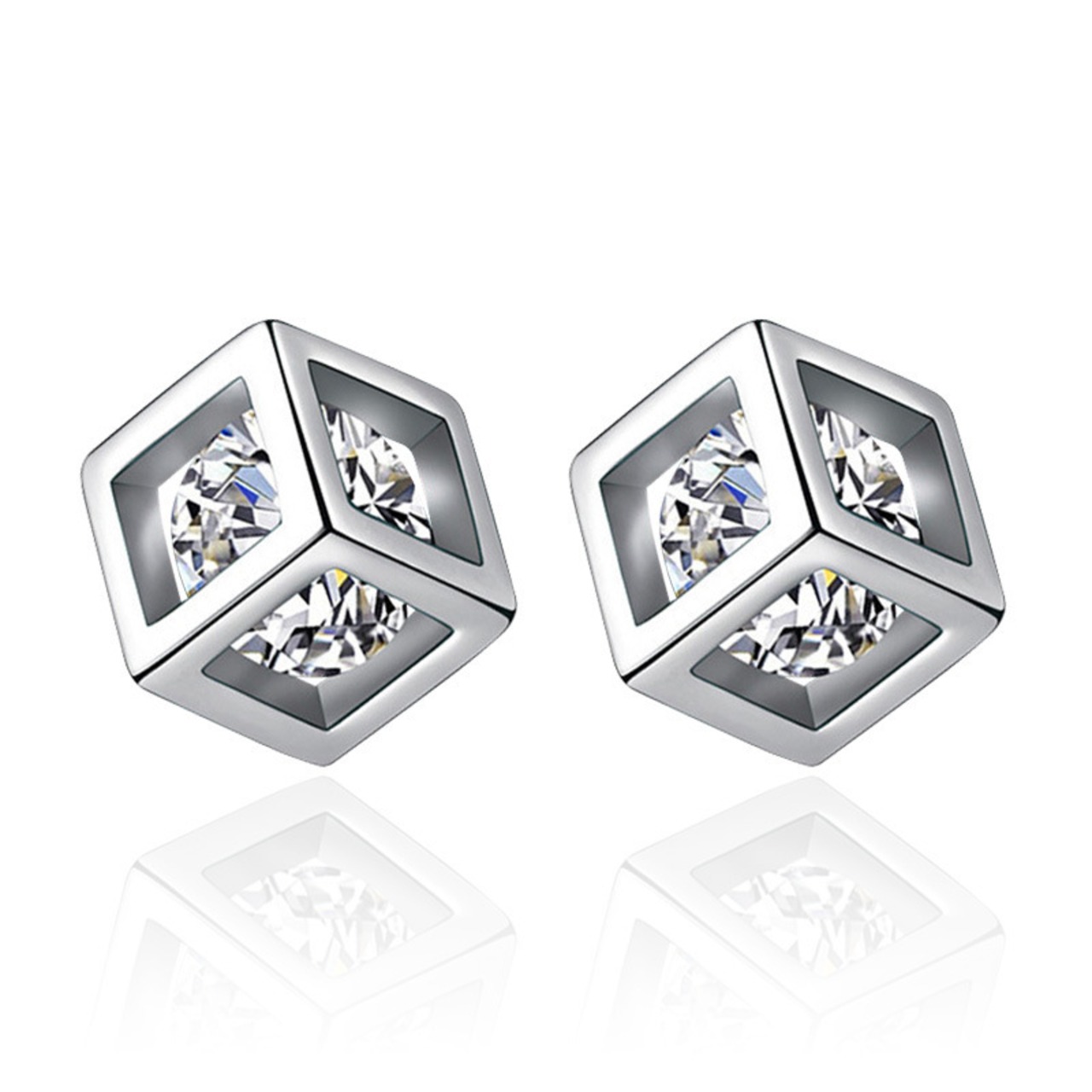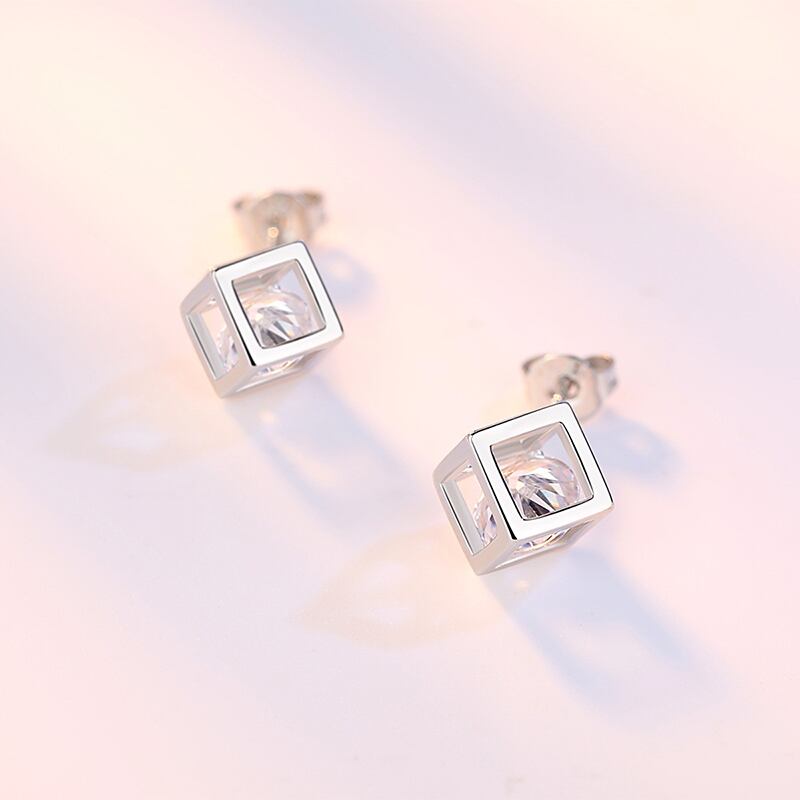 送料無料 ANENJERYシルバーカラーチャームスクエアキューブAAAジルコンピアスレディースガールギフトS-E905 イヤリング リング 指輪 銀 アクセサリー AE165533763682359
