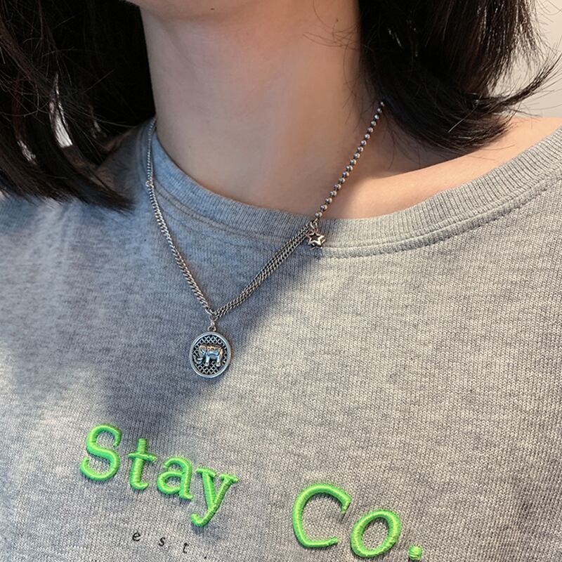 送料無料 ANENJERYシルバーカラーヴィンテージジュエリーエレファントスマイルフェイスタイシルバーネックレスレディースパーティーギフトS-N515 レース 銀 ビンテージ アクセサリー AE165544816734844