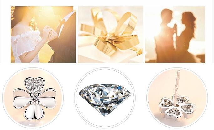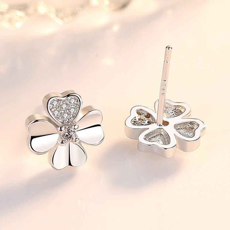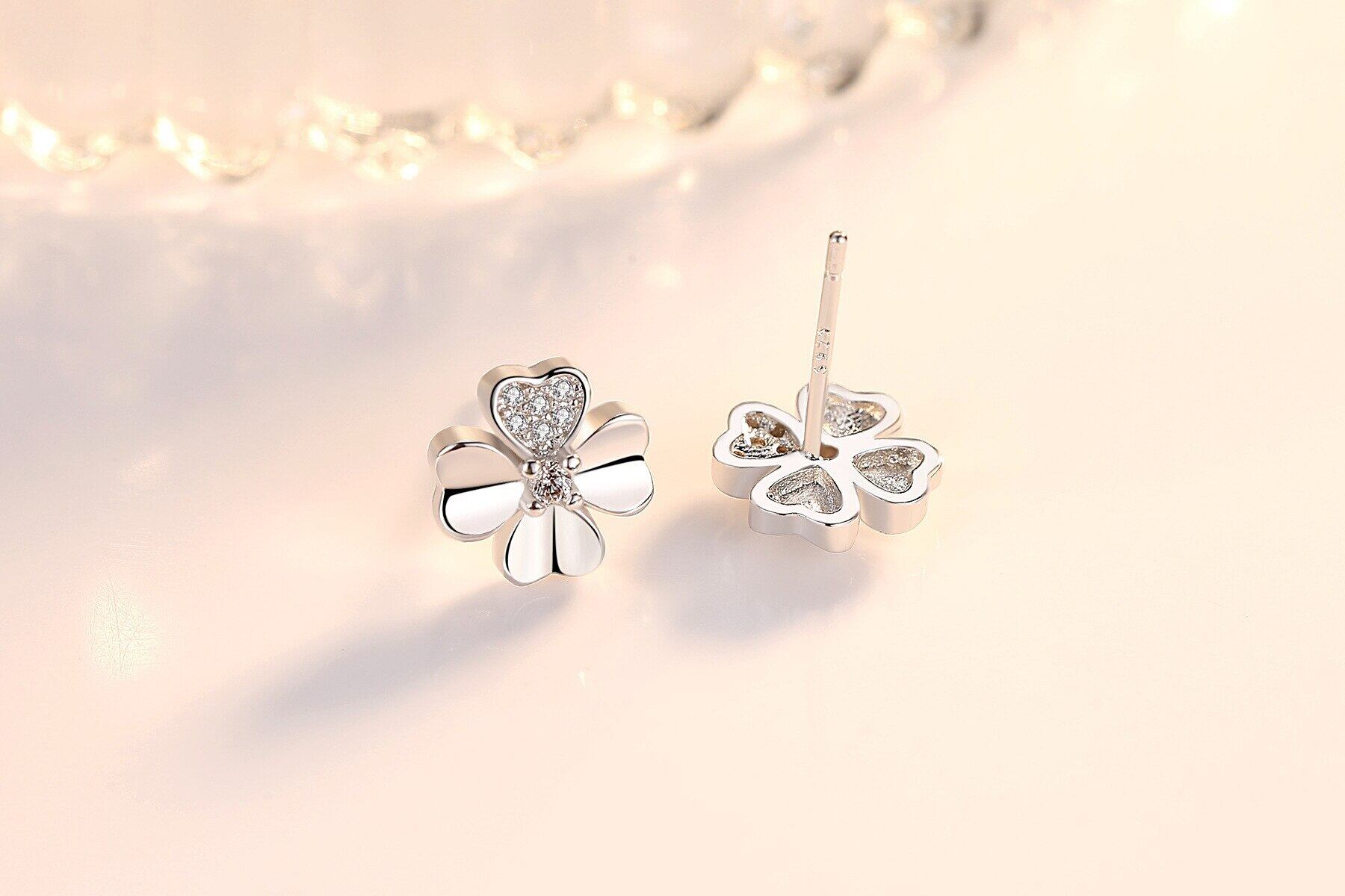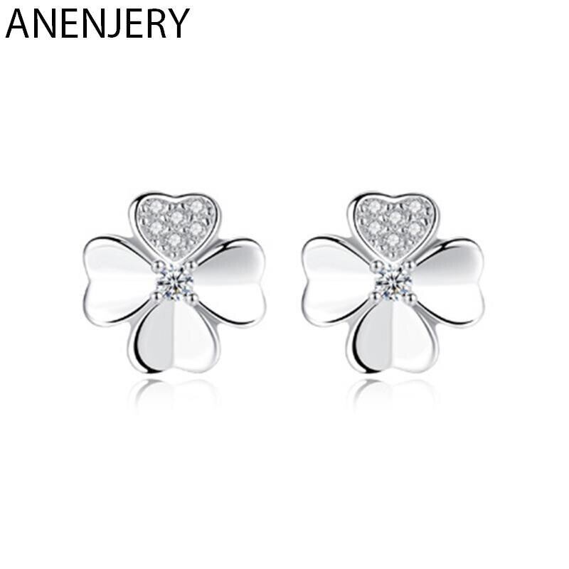 送料無料 ANENJERYシルバーカラー人気のラッキー四つ葉のクローバースタッドピアスジルコンジュエリーレディースパーティーギフト配送S-E588 イヤリング 銀 アクセサリー AE165545775410643