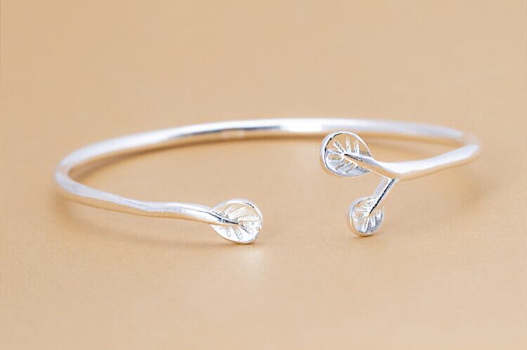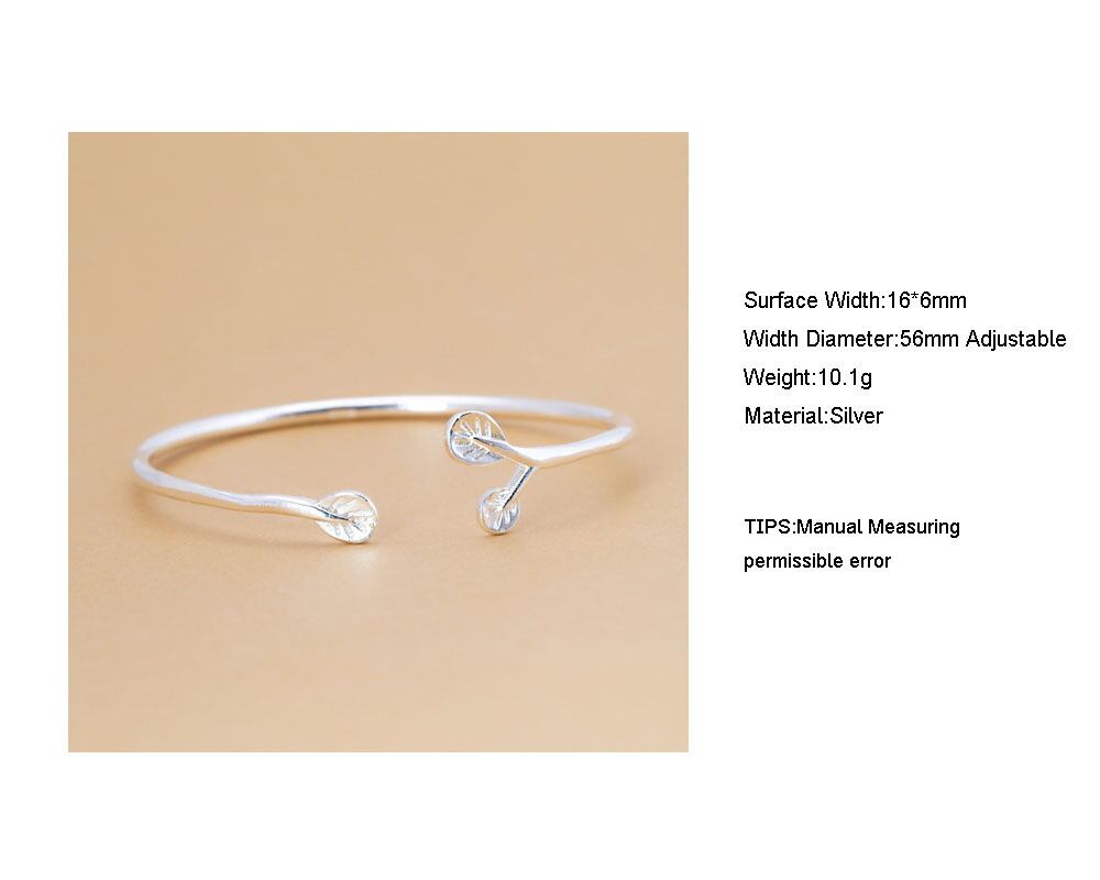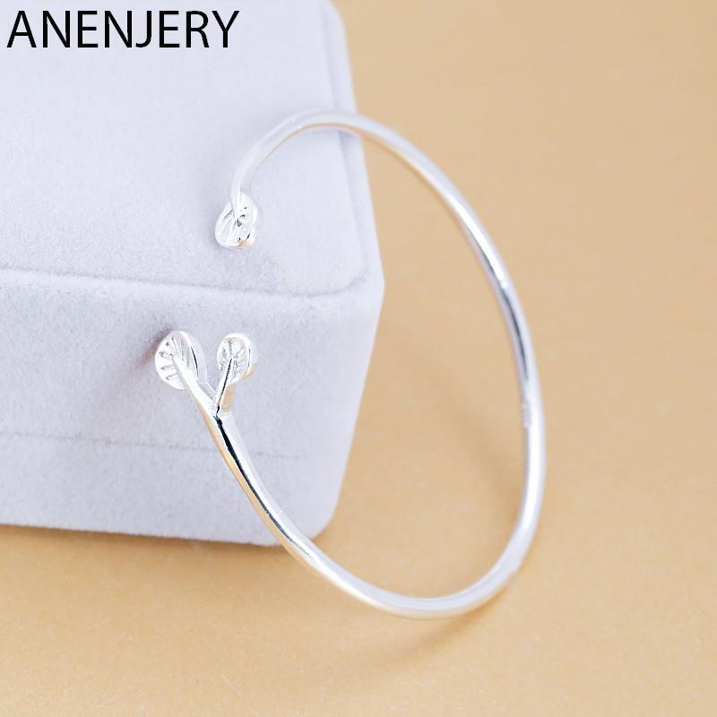 送料無料 ANENJERYシルバーカラーオリーブリーフオープンカフバングルブレスレット繊細な植物バングル女性ガールギフトジュエリーS-B288 銀 アクセサリー AE165557261520954