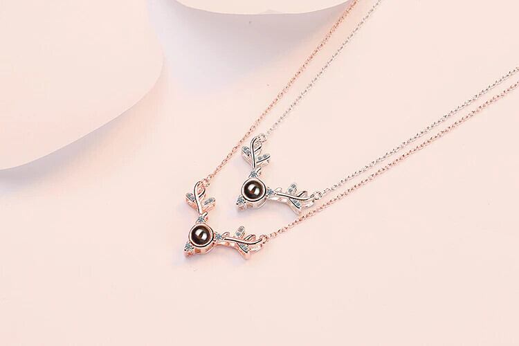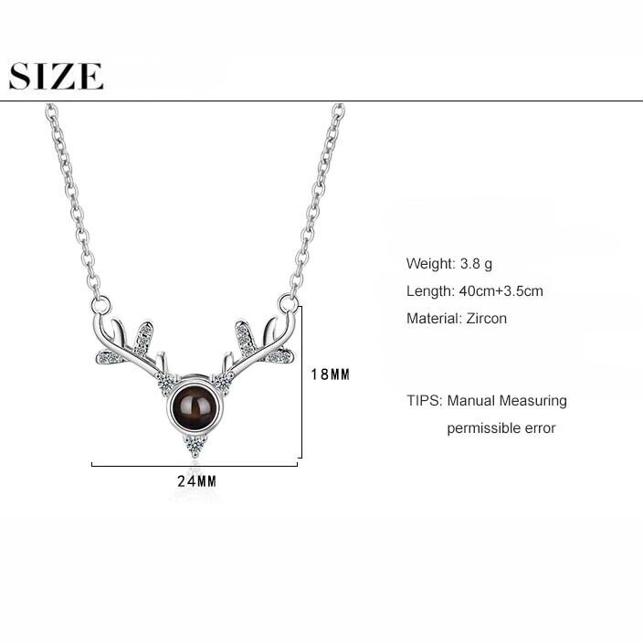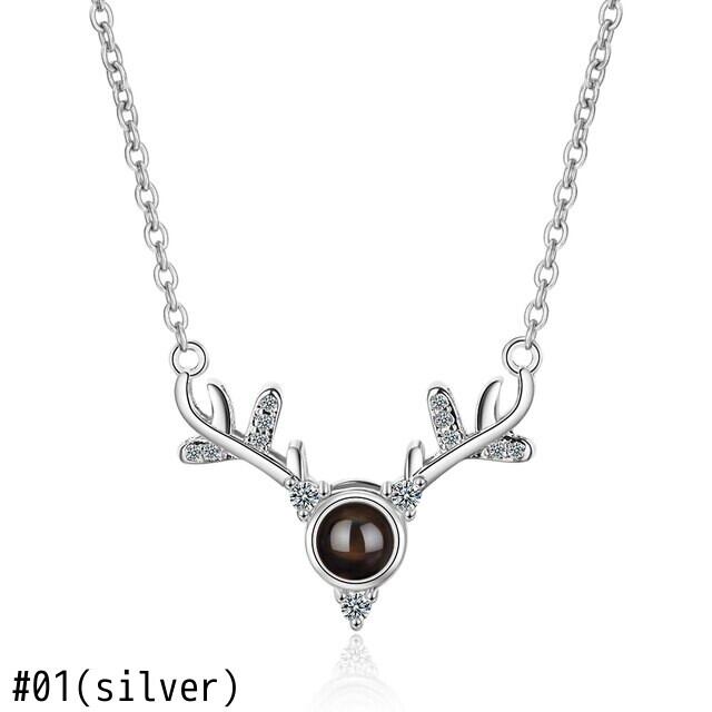 送料無料 ANENJERYシルバーカラーロマンティックプロジェクション意味のあるネックレス女性ジルコンエルクアントラーズネックレスギフトS-N401 レース 銀 アクセサリー AE16556444059253