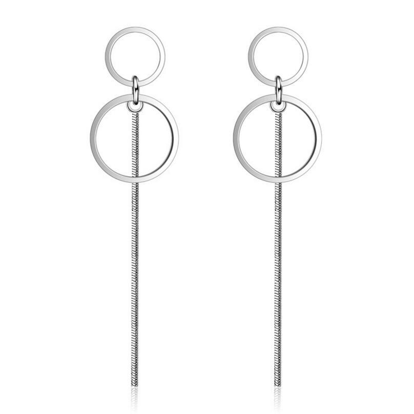 送料無料 ANENJERYシルバーカラーダブルラウンドサークルロングテルイヤリングイヤーラインジュエリーレディースパーティーS-E176 銀 アクセサリー AE165541416906796