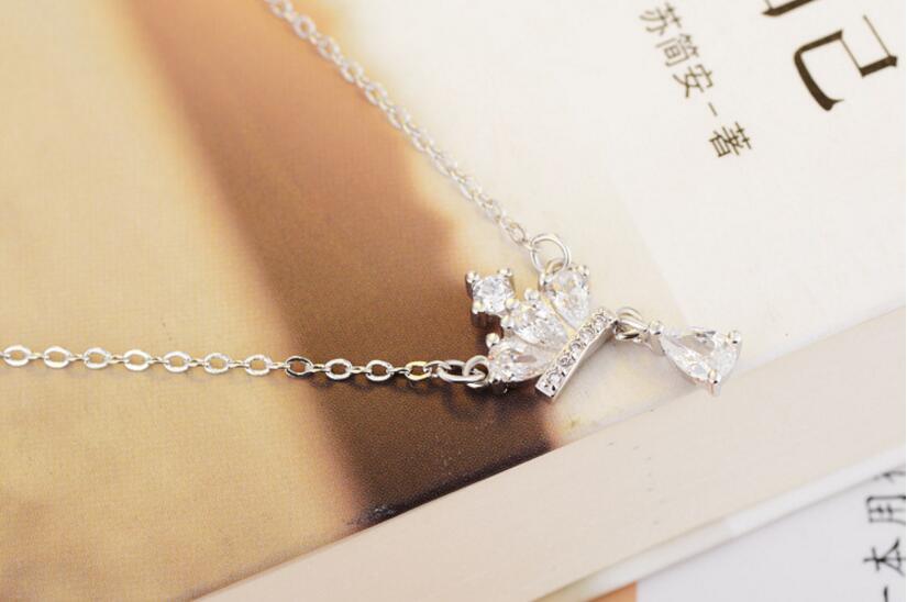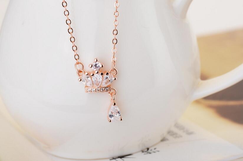 送料無料 ANENJERYシルバーカラークラウンペンダントネックレス、光沢のあるキュービックジルコンジュエリーレディースギフトS-N210 レース 銀 アクセサリー AE165517032675459