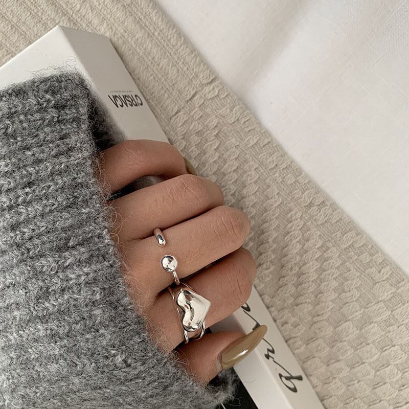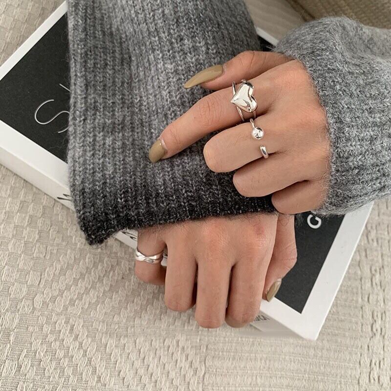 送料無料 ANENJERYシルバーカラースムースラブハートリングポリッシュラウンドボールオープンリングレディースギフトS-R655 指輪 銀 アクセサリー AE165573761674003