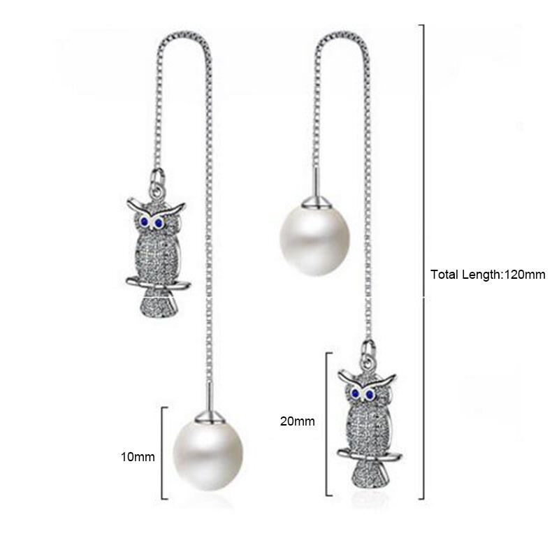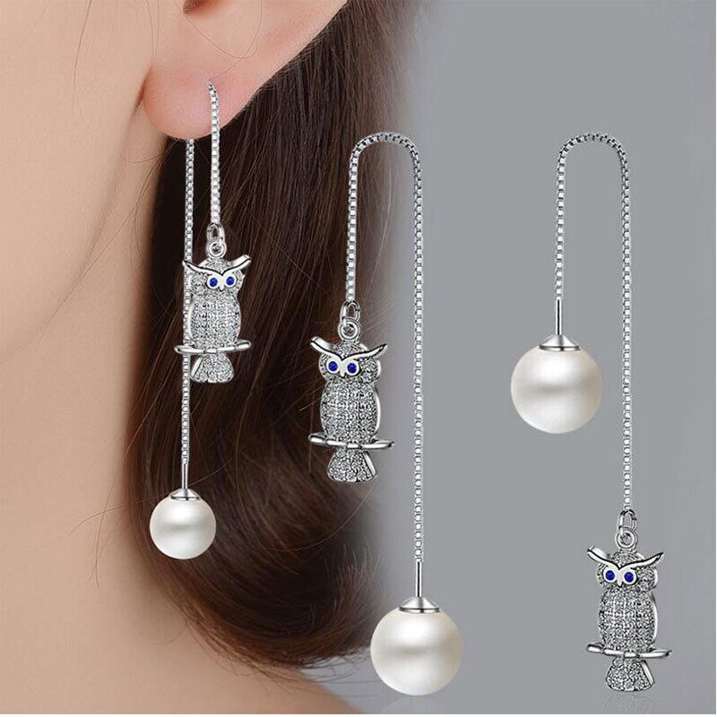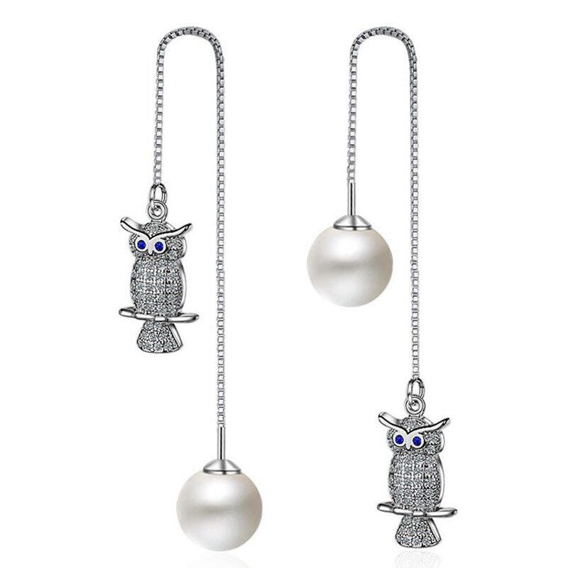 送料無料 ANENJERYシルバーカラージルコニアフクロウ型ロングテルピアスパールピアスレディースパーティージュエリーS-E392 イヤリング 真珠 リング 指輪 銀 風信子石 アクセサリー AE16556176188670