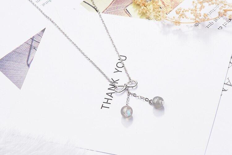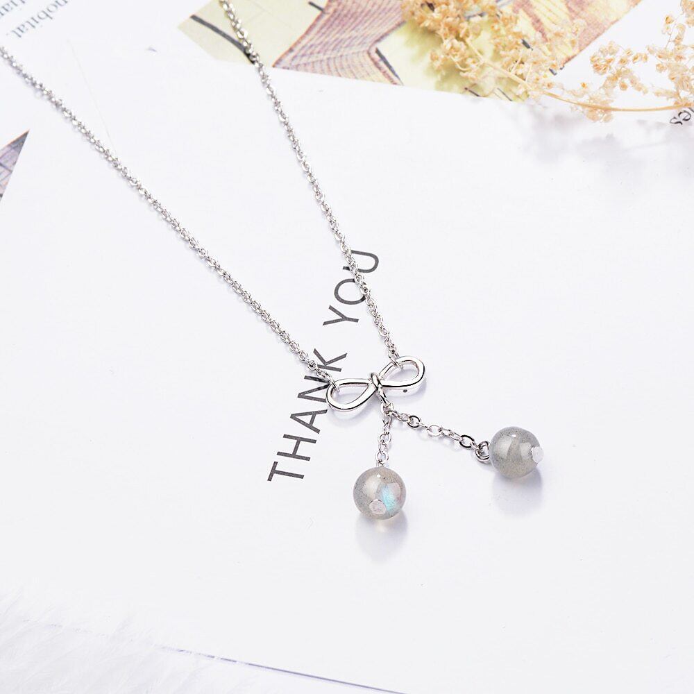 送料無料 ANENJERYシルバーカラースウィートストロベリークリスタルビーズペンダントネックレスかわいいボウノットネックレスレディミニマリズムジュエリーS-N335 リボン レース 大人ガーリー キュート カジュアル 銀 アクセサリー AE165536786937602