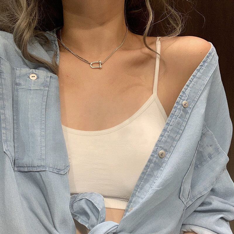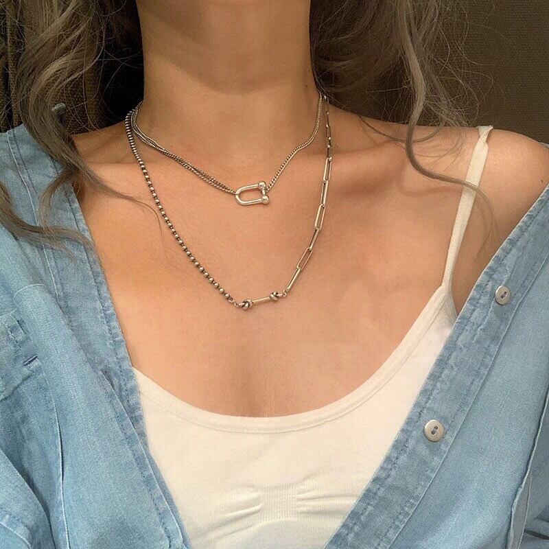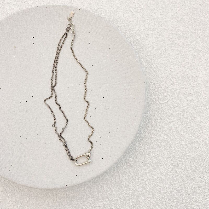 送料無料 ANENJERYシルバーカラーレトロU字型タイシルバーネックレスレディースダブルレイヤーショート鎖骨チェーンネックレスS-N530 レース 銀 アクセサリー AE165546655226921