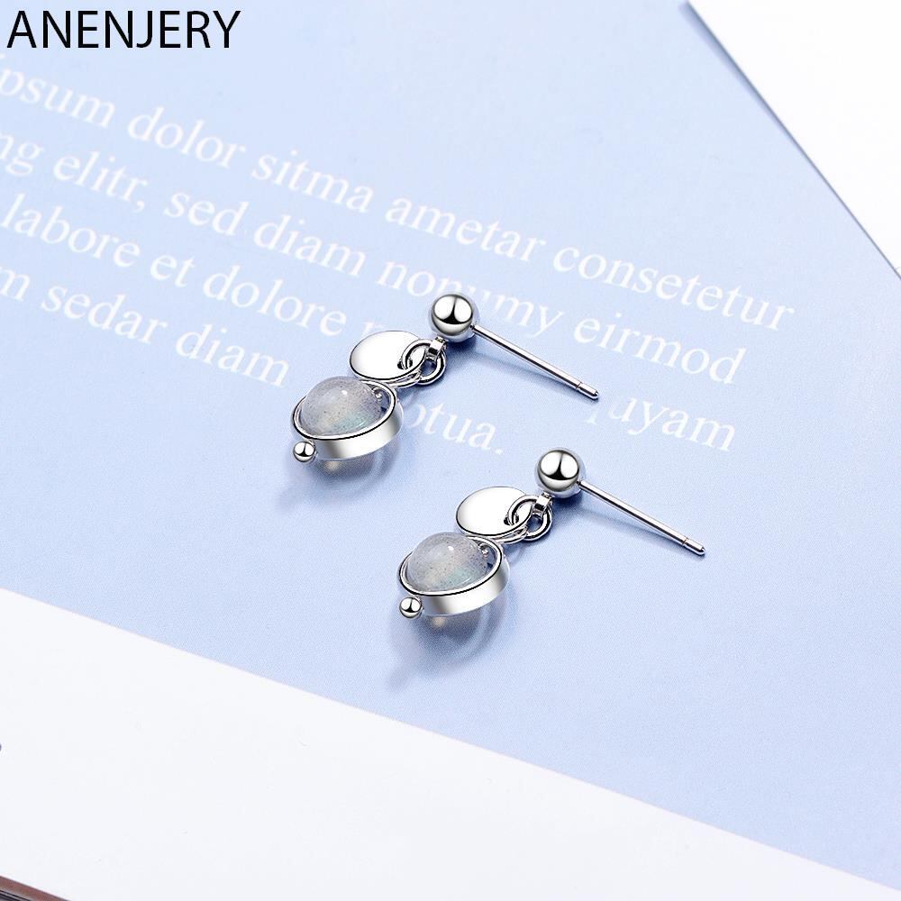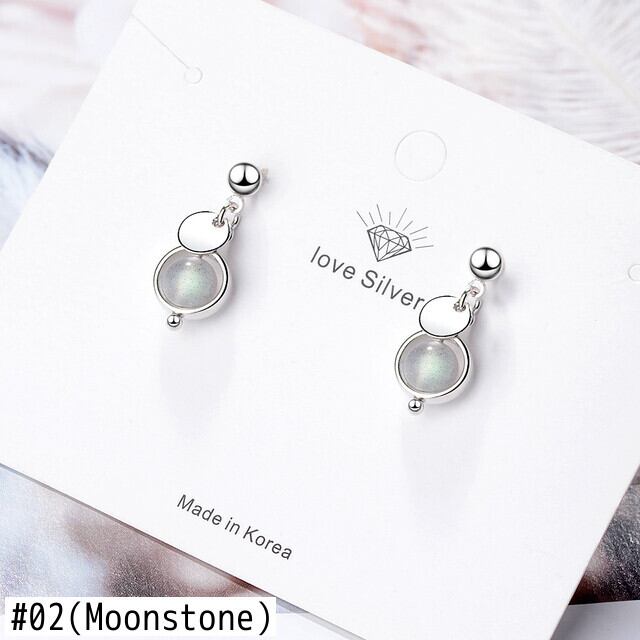 送料無料 ANENJERYシルバーカラーシンプルトレンディナチュラルストロベリークリスタルムーンストーンTelイヤリングレディースギフトS-E826 銀 天然 アクセサリー AE165568014444220