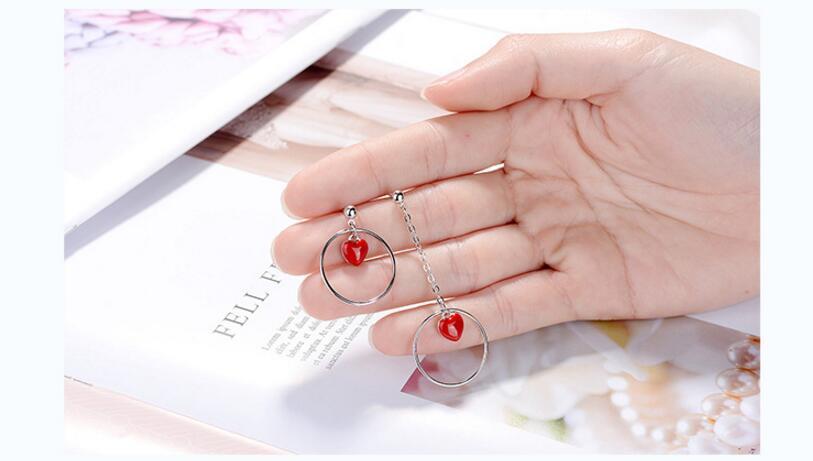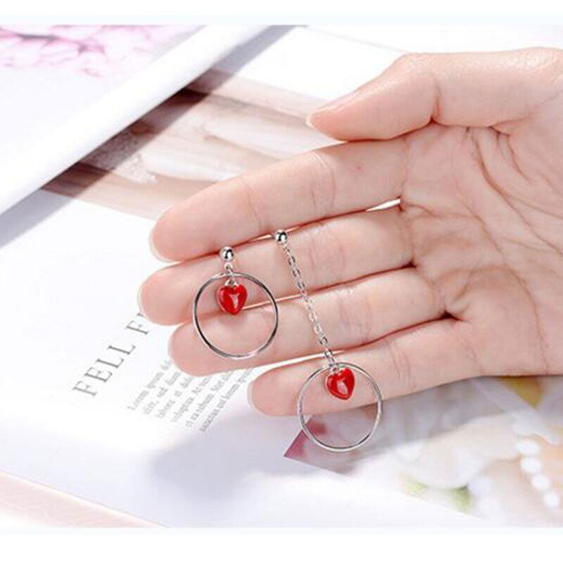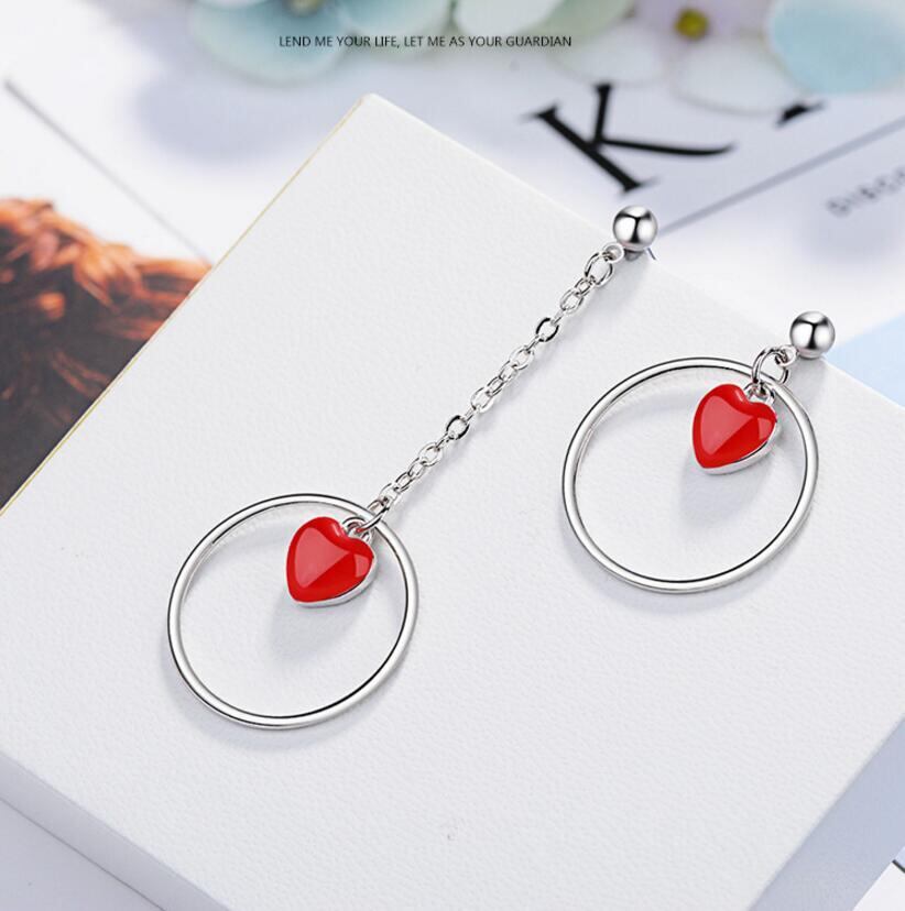送料無料 ANENJERYシルバーカラーシルバーカラー非対称レッドハートピアスレディースイヤーチェーンジュエリーoorbellenS-E495 イヤリング リング 指輪 銀 アクセサリー AE165521694630266