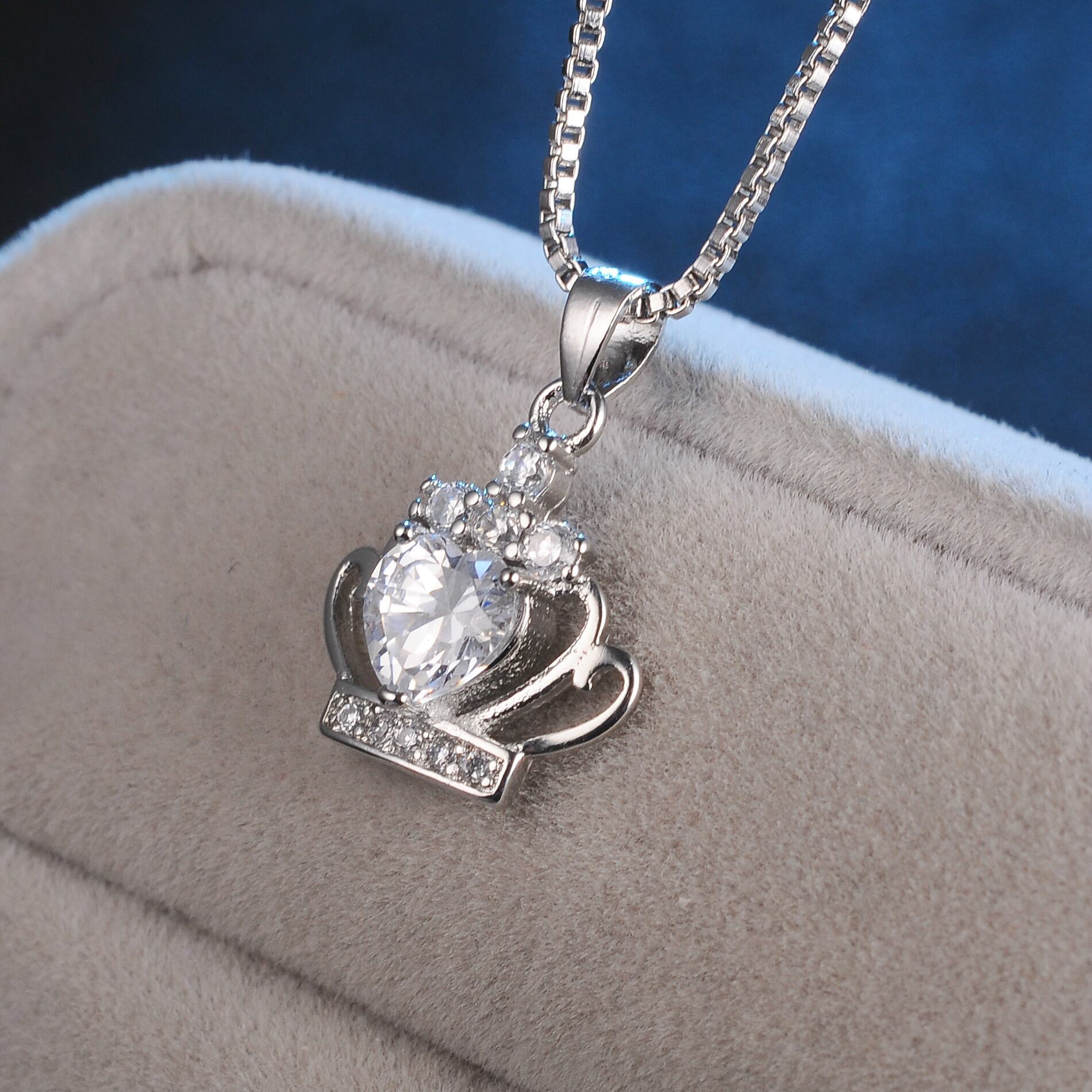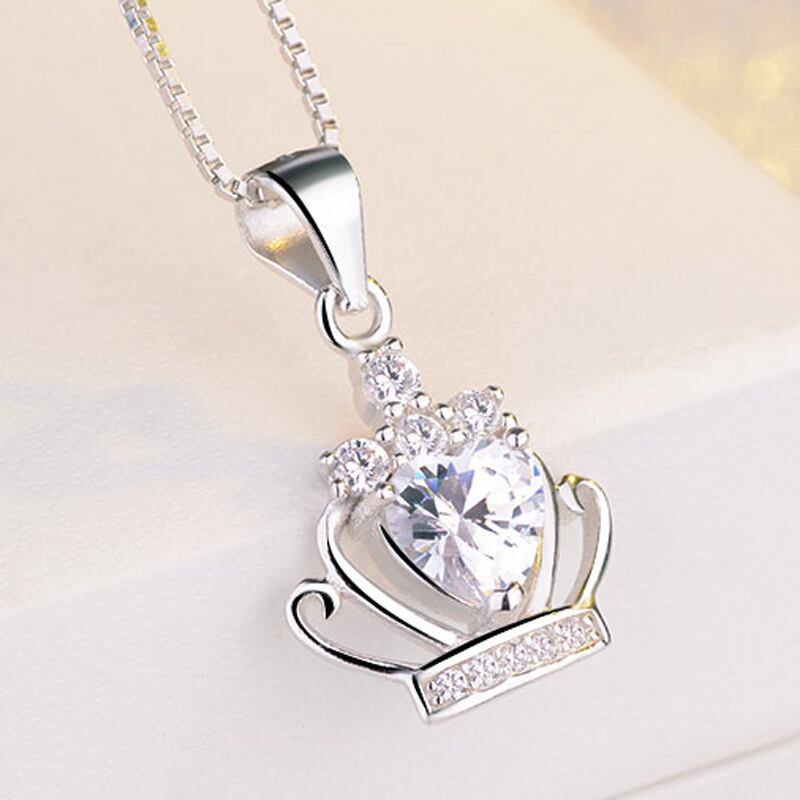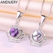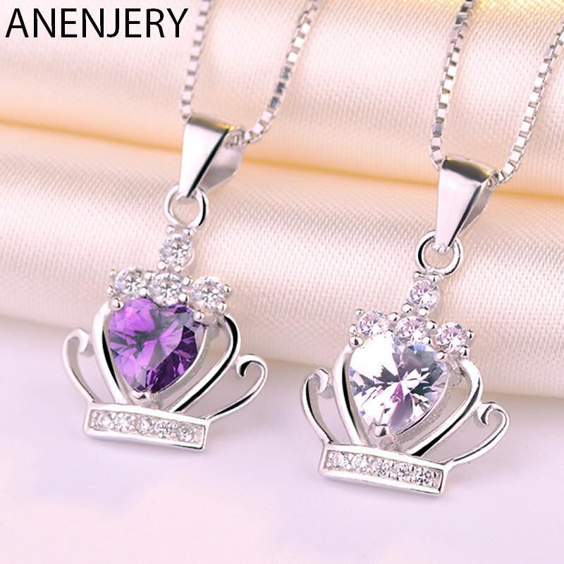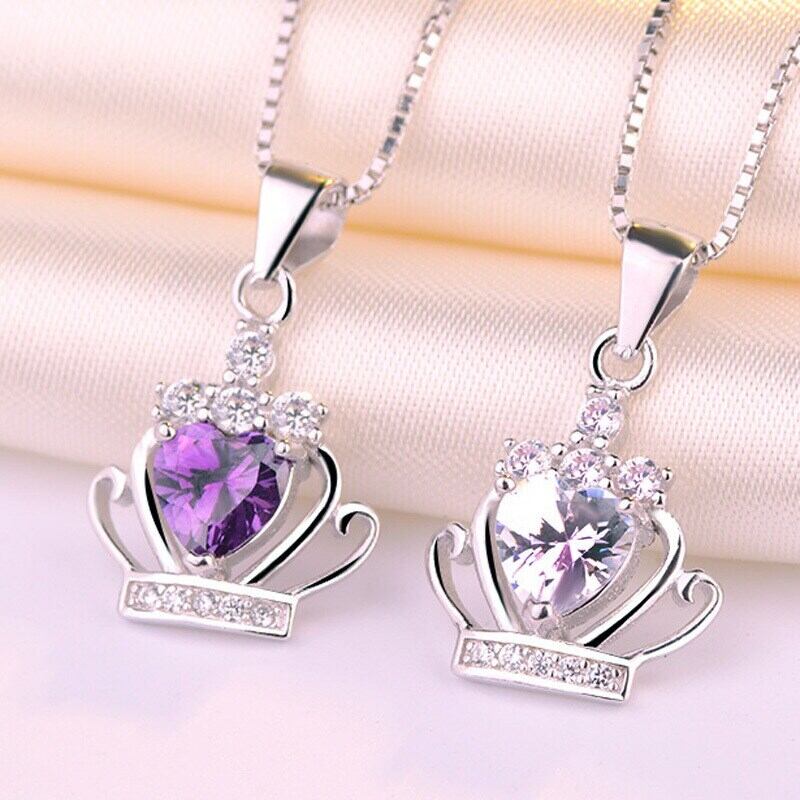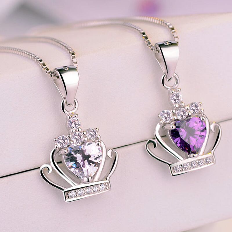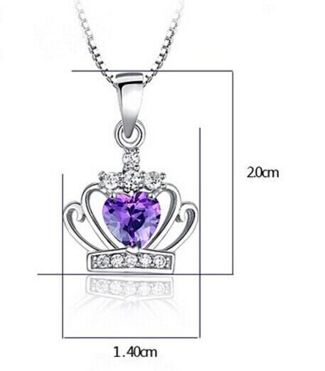 送料無料 シルバーカラーハートジルコンクラウンシェイプペンダントネックレスクリアパープルクリスタルウェディングネックレスジュエリーS-N98 レース 銀 アクセサリー AE165595850953366