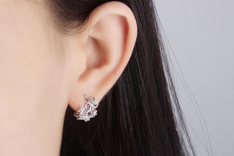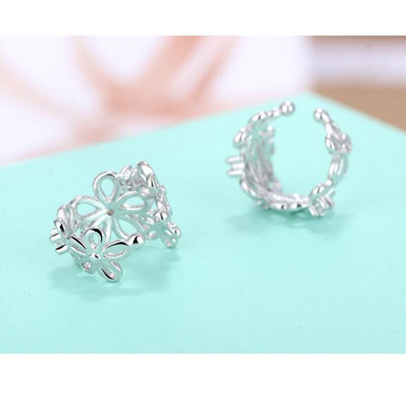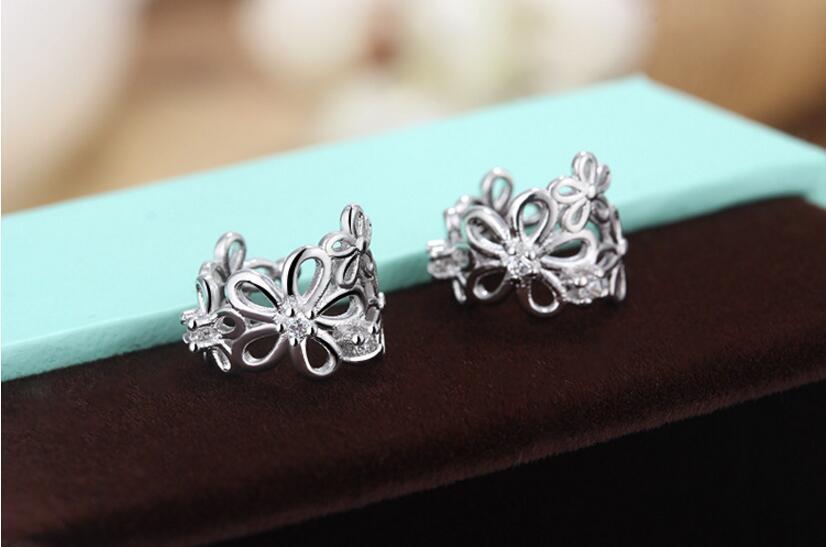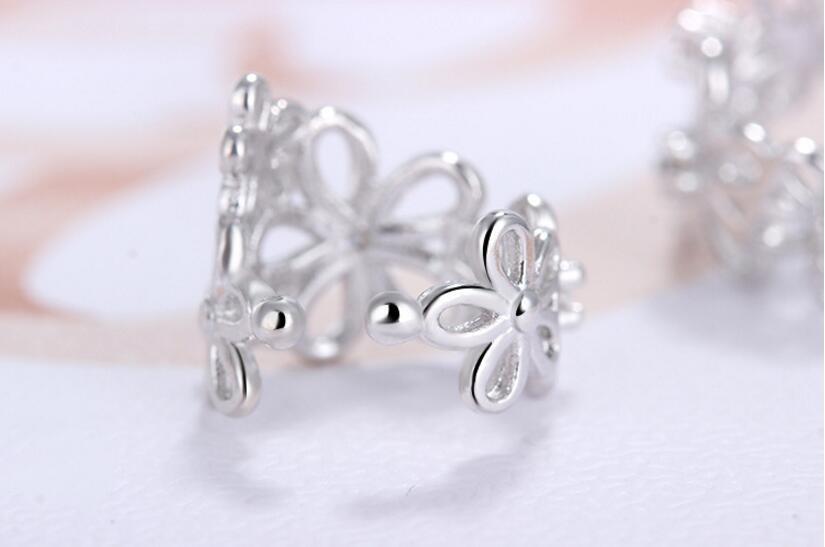 送料無料 ANENJERYシルバーカラーチャーミングなフラワーシェイプのクリップ、ジルコン装飾イヤカフノンピアスS-E398 イヤリング リング 指輪 フラワーデザイン 銀 アクセサリー AE165578879719967