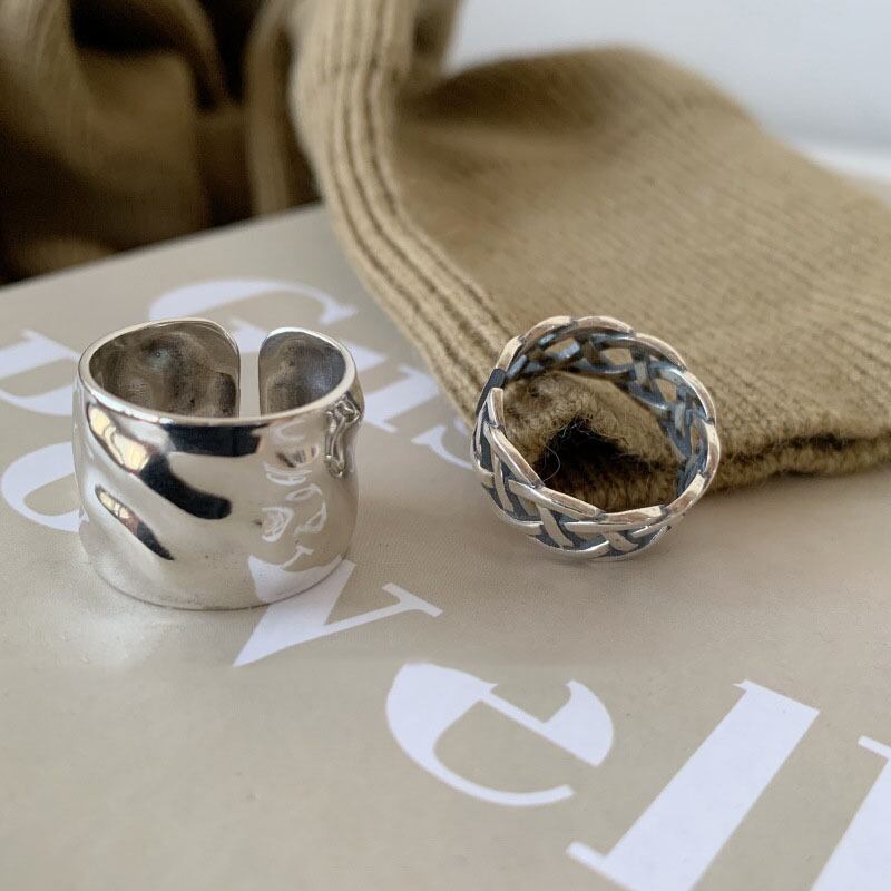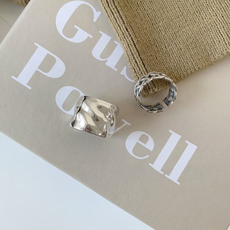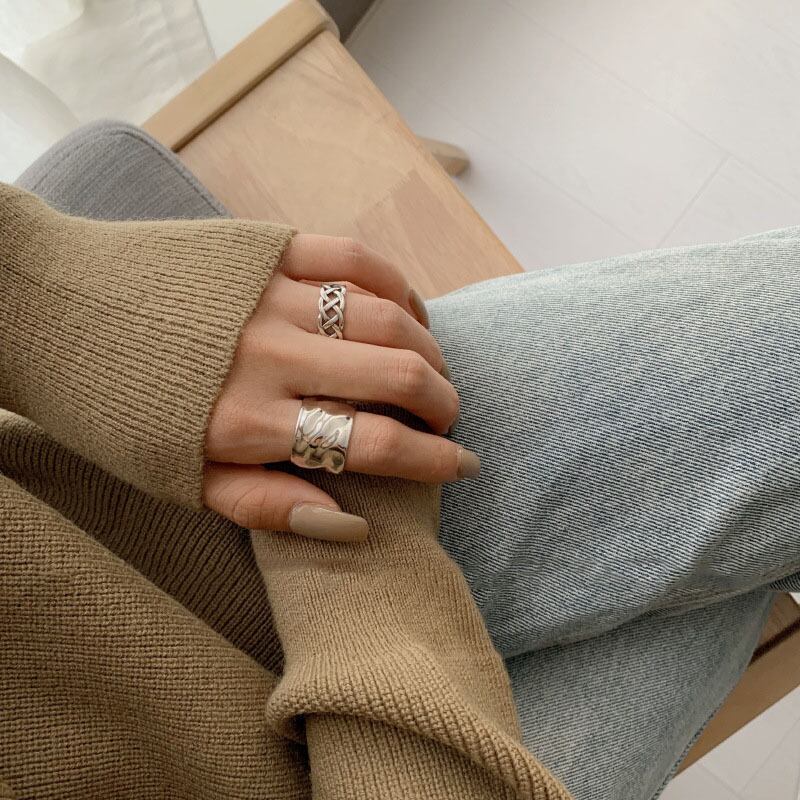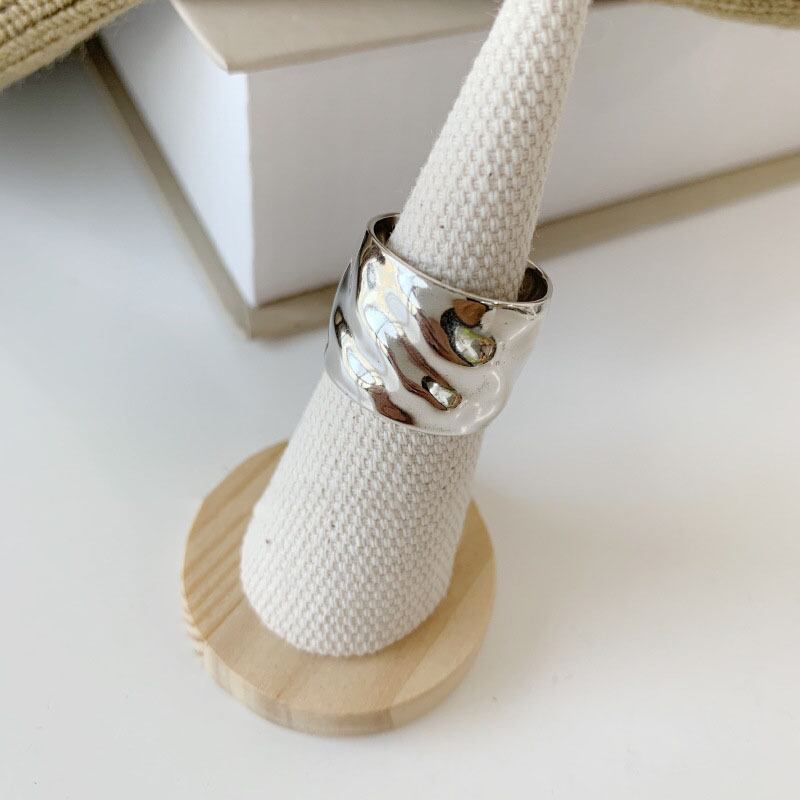 送料無料 ANENJERYシルバーカラージュエリー滑らかな幅の表面不規則なシルバーリング幾何学的なオープンリング女性男性パーティーS-R661 指輪 銀 アクセサリー AE165590328433715