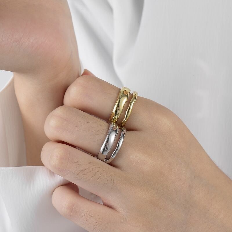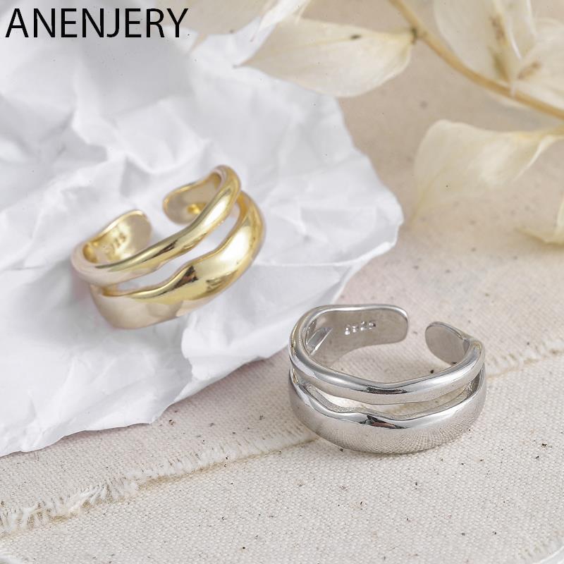 送料無料 ANENJERYシルバーカラーポリッシュイレギュラーウェーブオープニングリングレディースパーティージュエリーギフトS-R513 指輪 銀 アクセサリー AE165513356964569
