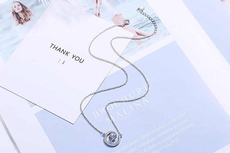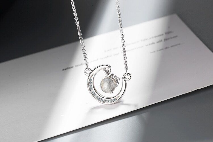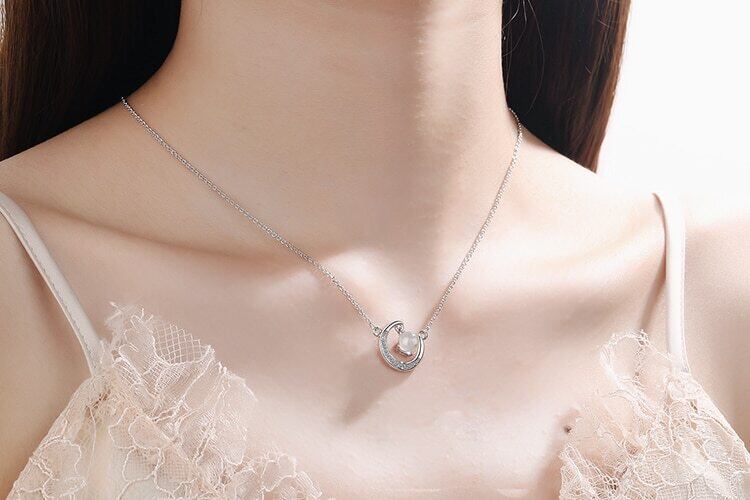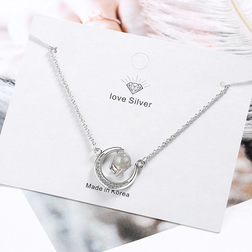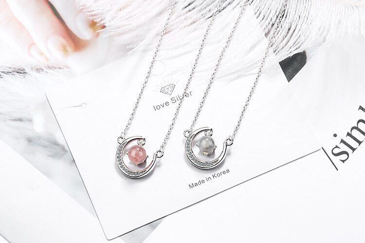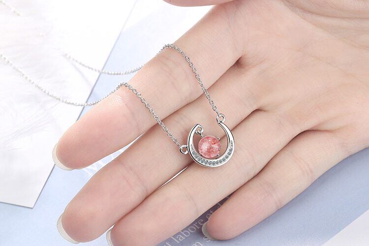 送料無料 ANENJERYシルバーカラースウィートストロベリークリスタルムーンストーンネックレスムーンシェイプペンダントネックレスレディースギフトS-N381 レース 大人ガーリー キュート カジュアル 銀 アクセサリー AE165542218071407