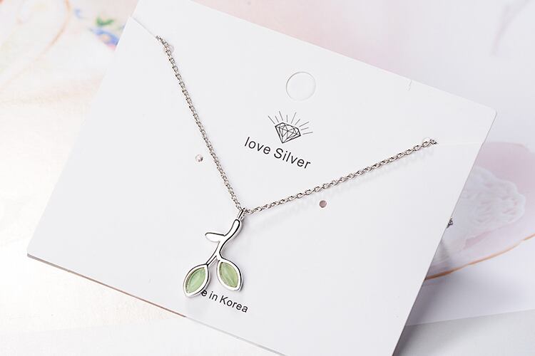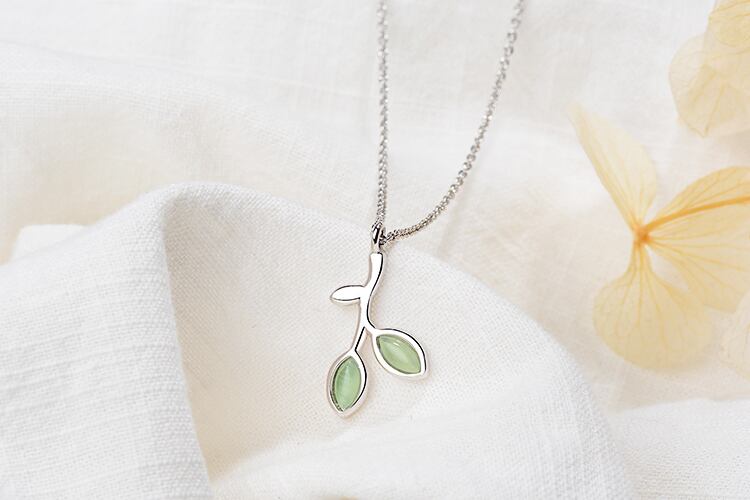 送料無料 シルバーカラー可憐なグリーンオパールツリーリーフペンダントネックレスショートクラビクルチェーンジュエリーレディースギフトS-N301 レース 蛋白石 銀 アクセサリー AE165595617533981