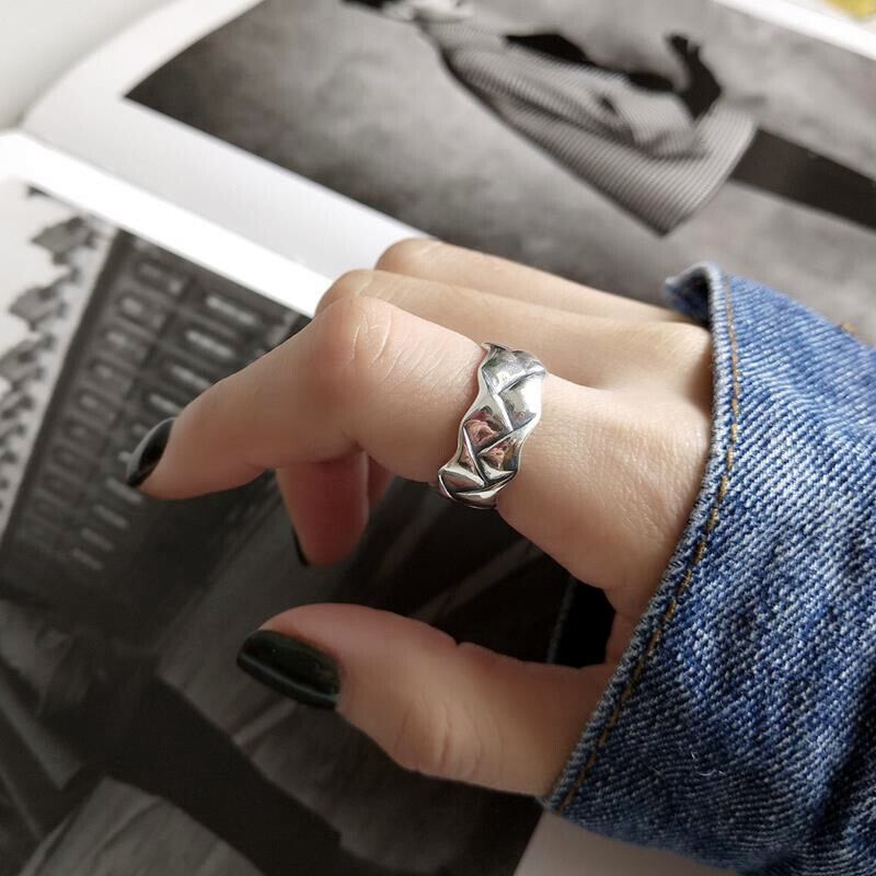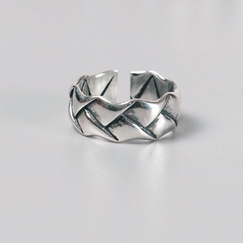 送料無料 ANENJERYシルバーカラーウーブンライン幅表面タイシルバーカラーリングヴィンテージオープニングリングレディースジュエリーS-R573 指輪 銀 ビンテージ アクセサリー AE165526097627759