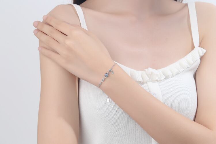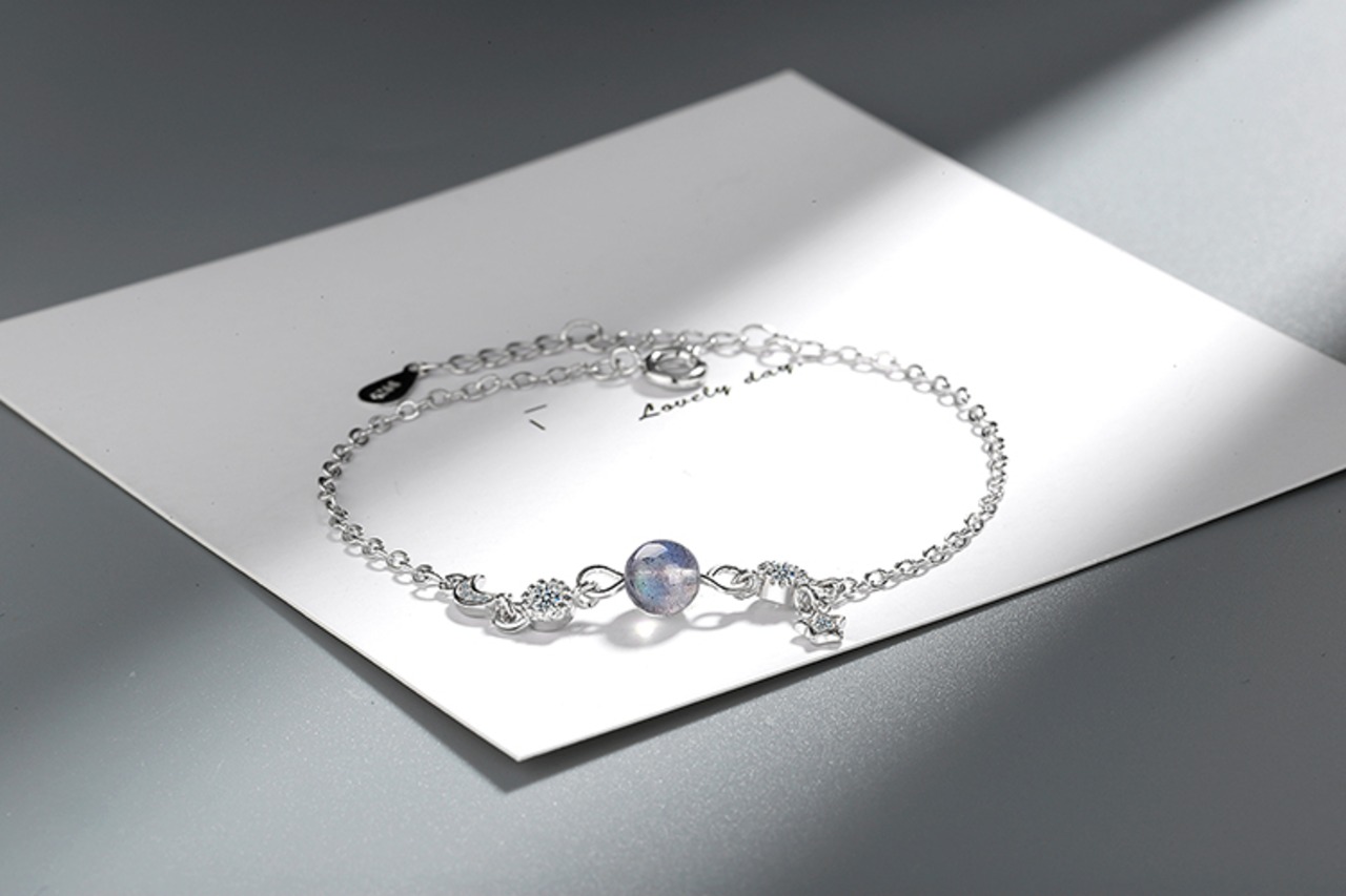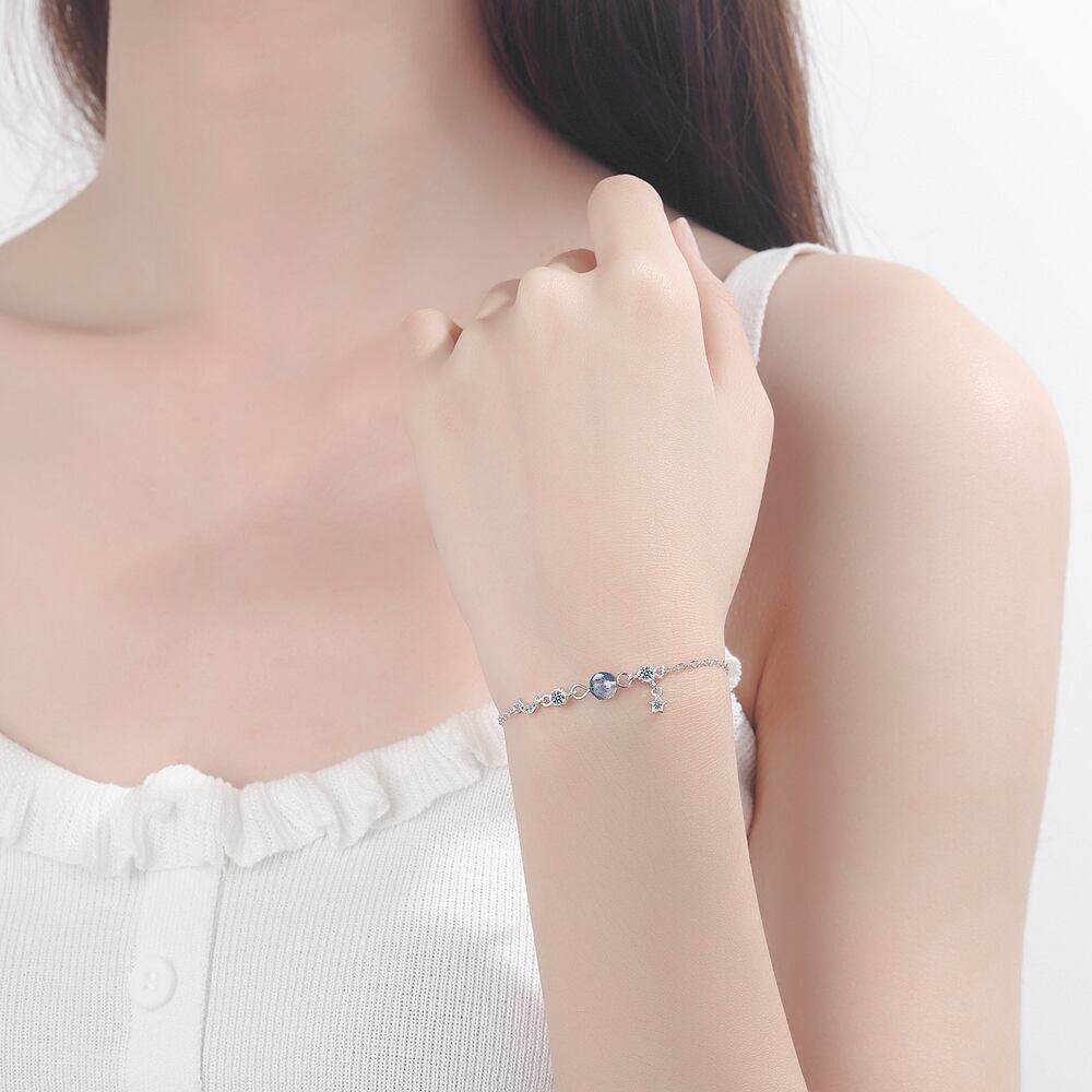 送料無料 ANENJERYシルバーカラー絶妙なムーンスタープラネットペンダントブレスレットグラデーションムーンストーンリンクチェーンブレスレットレディースS-B270 銀 アクセサリー AE165597361979453