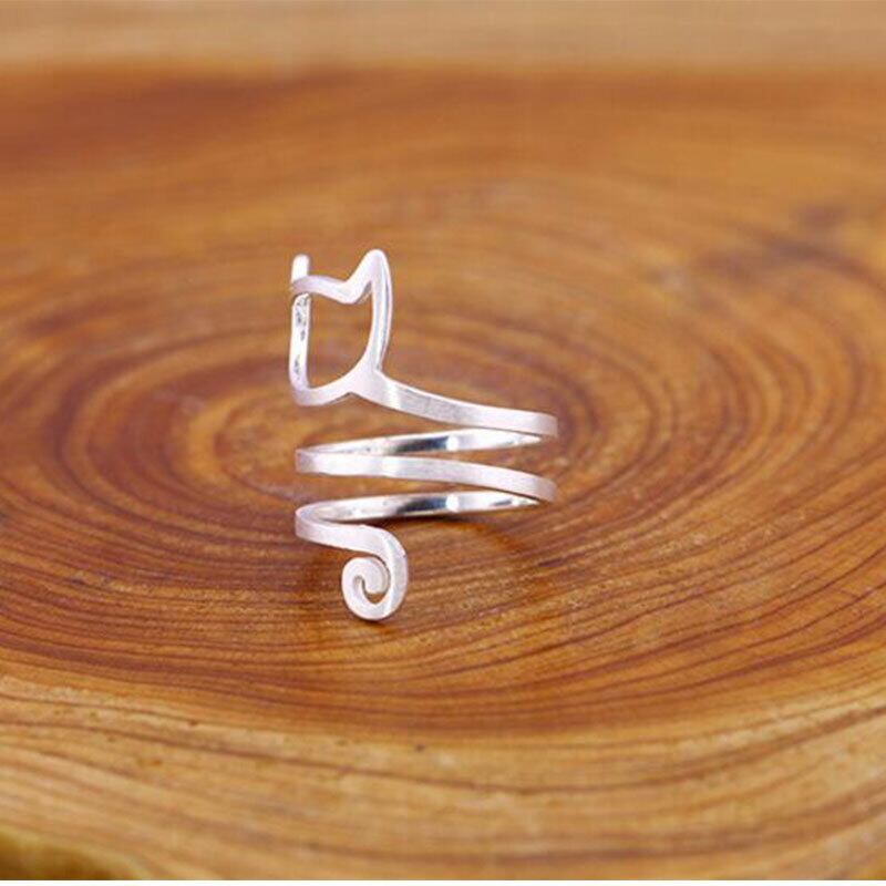 送料無料 ANENJERYシルバーカラートレンディシルバーカラーキャットアニマルマルチレイヤーラップアラウンドアジャスタブルリングレディースジュエリーギフトS-R280 指輪 銀 アクセサリー AE165519676905064