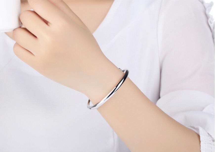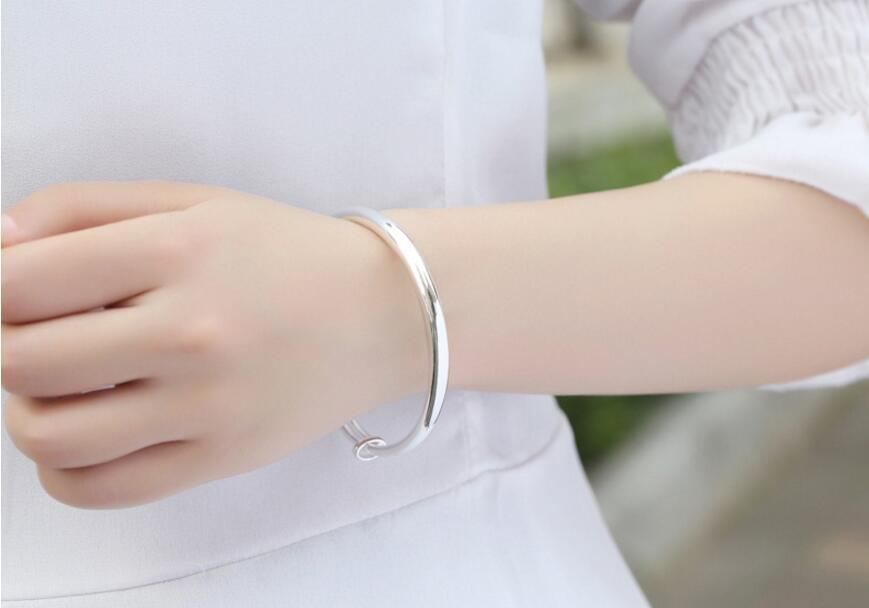 送料無料 ANENJERYシルバーカラーバングルシンプルアジャスタブルブレスレット&バングルレディースS-B55 銀 アクセサリー AE165557903960383