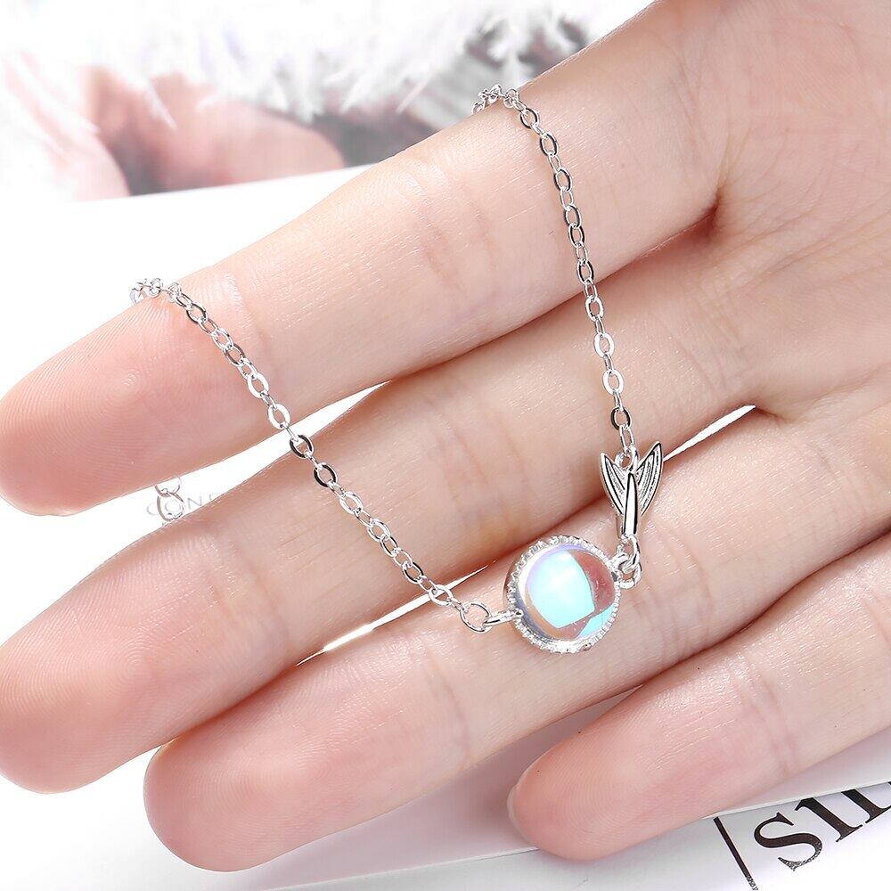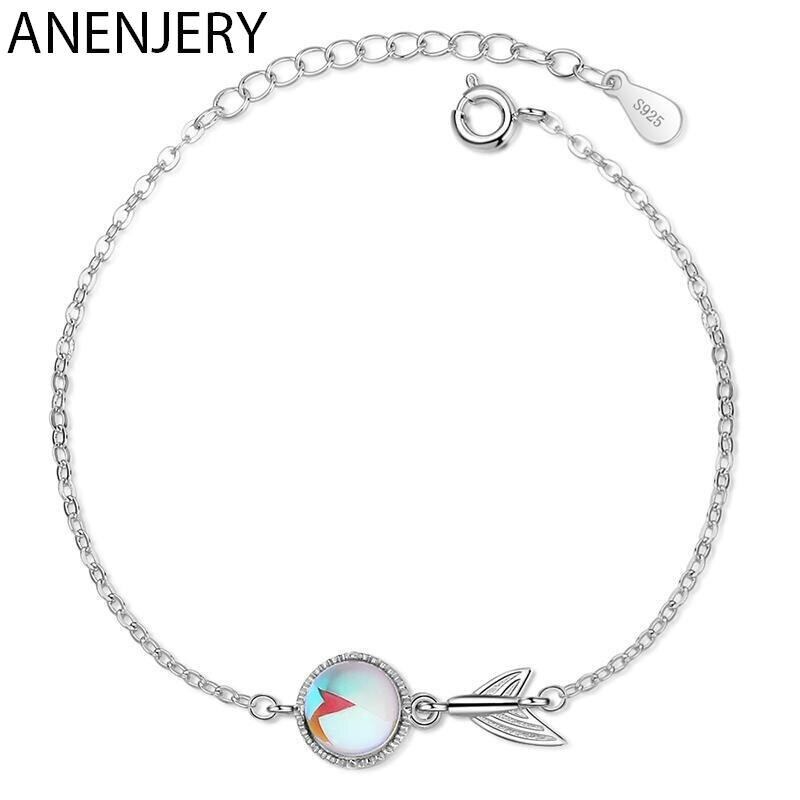 送料無料 ANENJERYシルバーカラーかわいいナチュラルレインボームーンストーンチャームブレスレットレディースガールズウェディングジュエリーS-B263 大人ガーリー スウィート キュート カジュアル 銀 天然 アクセサリー AE165589135051059