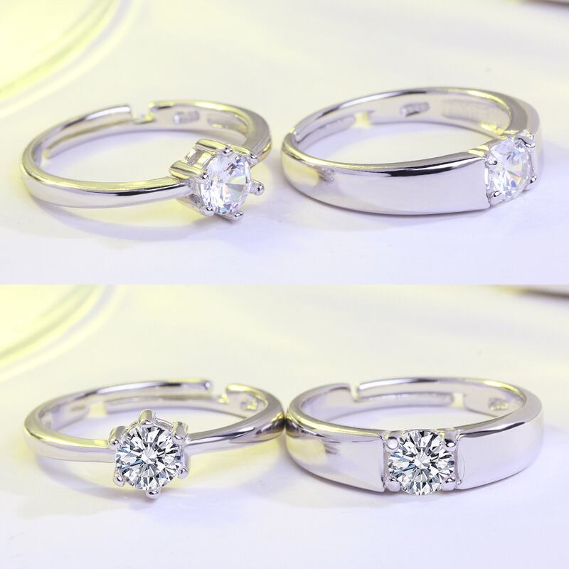 送料無料 ANENJERYシルバーカラーカップルウェディングエンゲージリングジルコン付き彼と彼女のプロミスリングジュエリーS-R14 指輪 銀 アクセサリー AE165594025697138