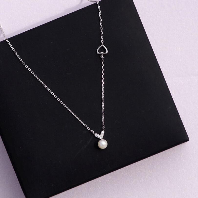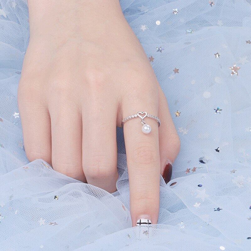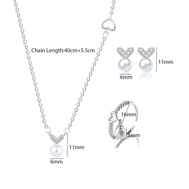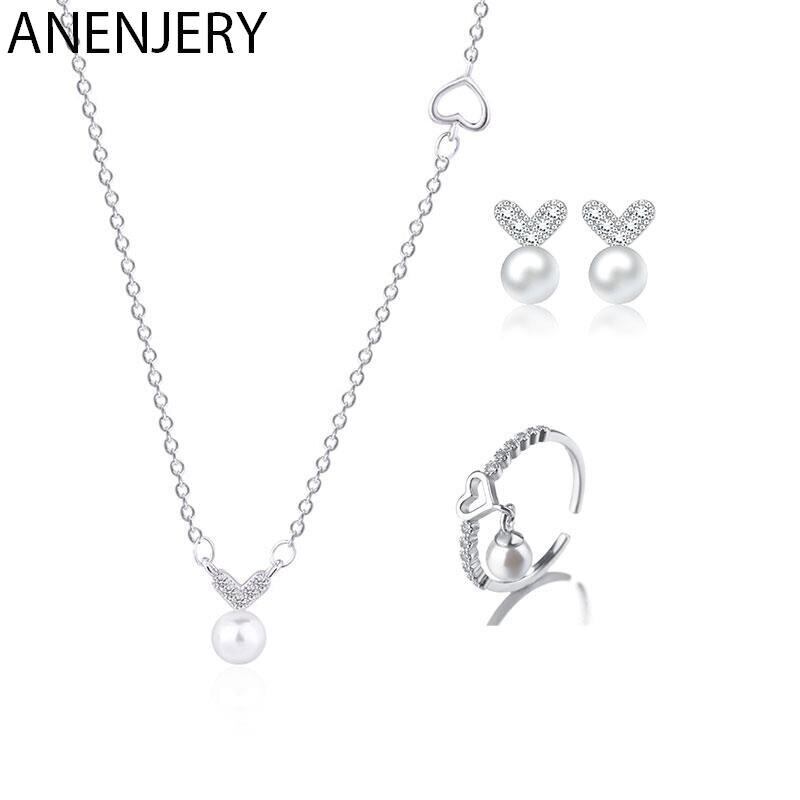 送料無料 ANENJERYシルバーカラースウィートパールハート型ネックレス+イヤリング+リングレディースジュエリーセット レース 大人ガーリー キュート カジュアル 真珠 指輪 銀 アクセサリー AE165559157312082