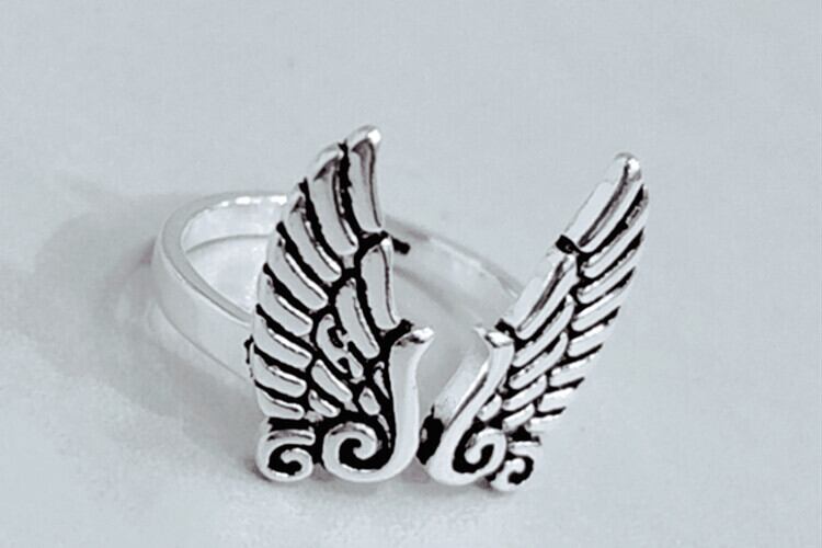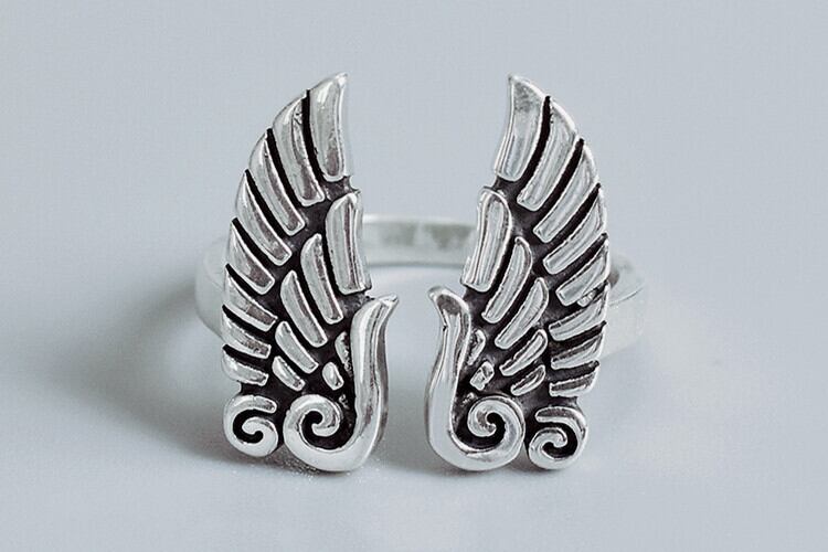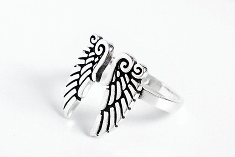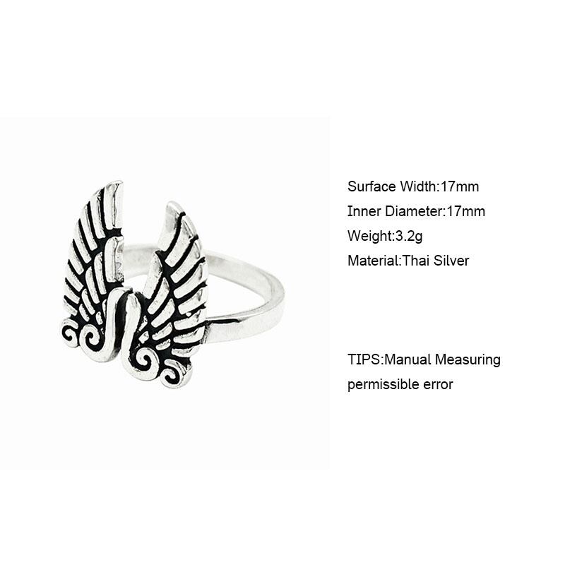 送料無料 ANENJERYシルバーカラーエンジェルウィングタイシルバーブラックカラーフィンガーリング女性男性パンクジュエリーギフトS-R495 指輪 銀 アクセサリー AE165542953050450